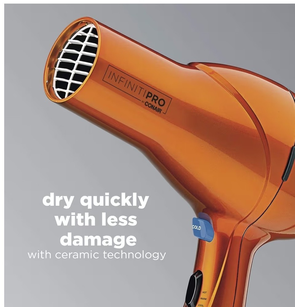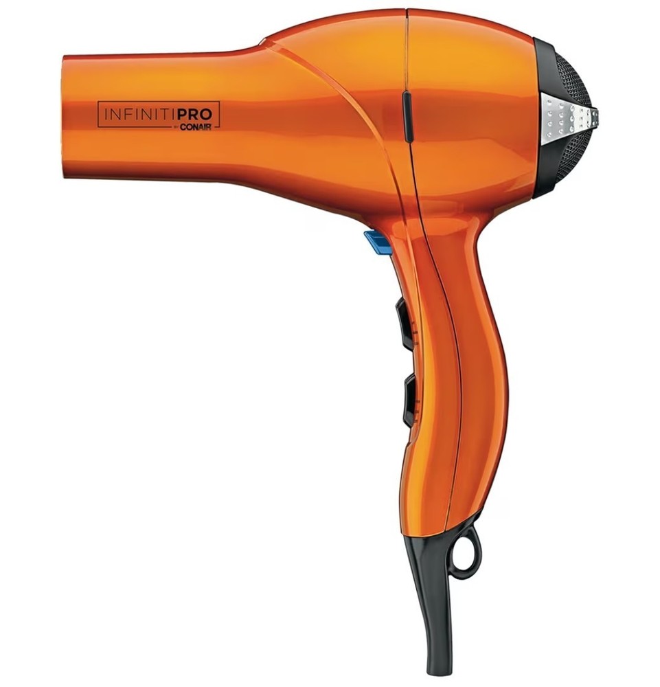 The Conair Infiniti Pro Hair Dryer is a high-quality standard hair dryer designed for both men and women. With its stylish orange color and cool tip feature, this electric-powered dryer offers adjustable heat settings and two speeds for customizable styling options. The built-in diffuser and ionic technology allow for sleek and salon-quality results, making it a must-have for anyone looking to achieve professional-looking hair at home. Made of durable plastic, this Conair hair dryer is a reliable and efficient styling tool for achieving perfect locks every time.