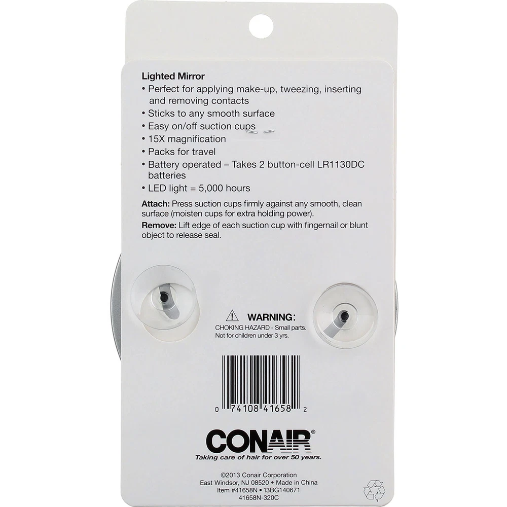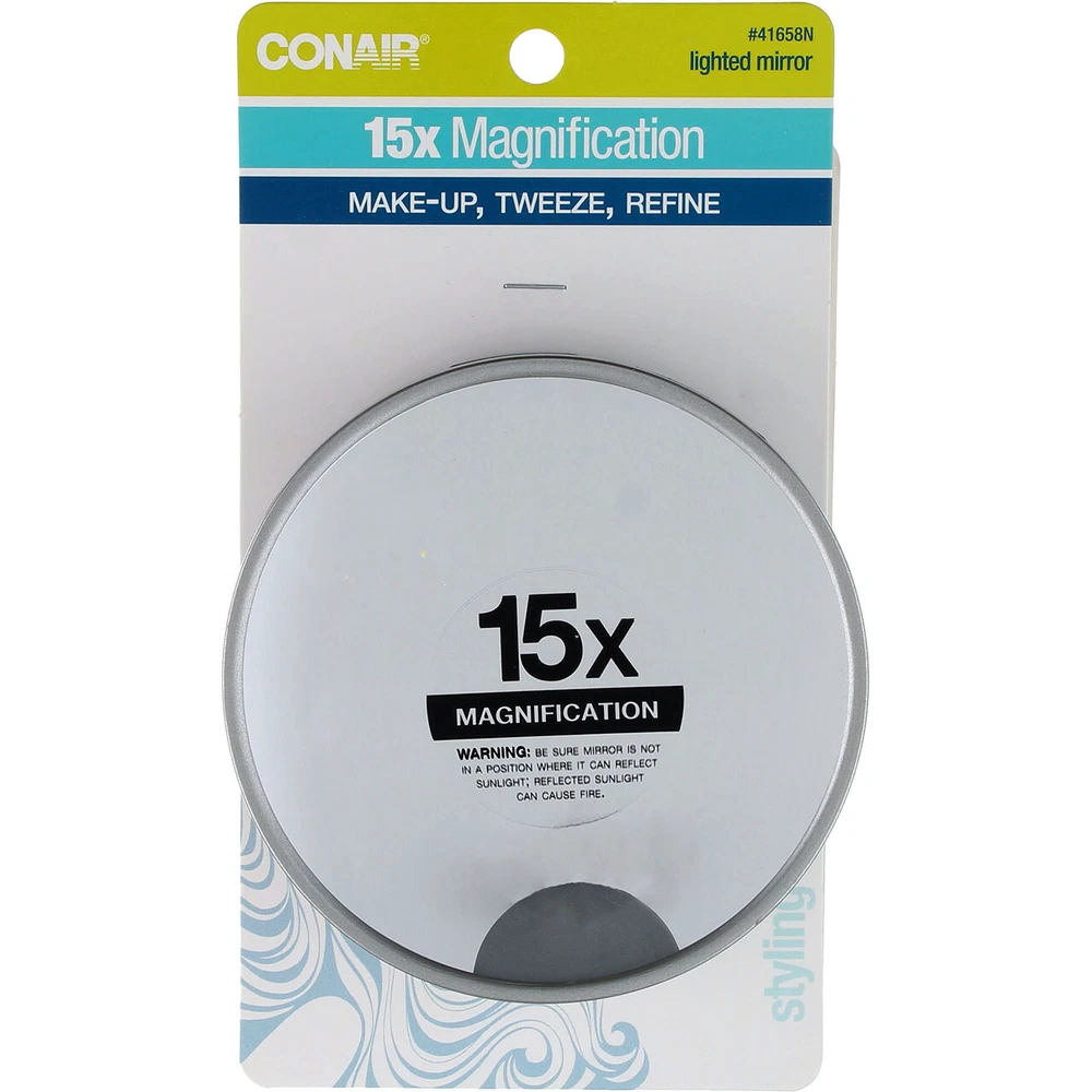 Conair Lighted Suction Cup Mirror, 15x Magnification