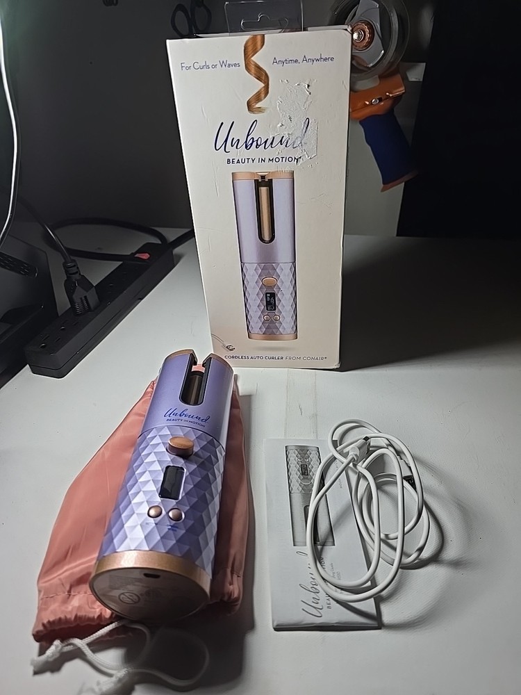 Type: Cordless, automatic hair curler. Brand: Conair, the creators of the Curl Secret auto curler. Features: Cordless and Rechargeable: Offers up to 60 minutes of cord-free runtime after a full charge (overnight recommended for first use). Automatic Curling: Features a ceramic curl chamber that draws hair in to create curls and waves. Multi-directional Curl Action: Allows for curls to be created in left, right, or alternating directions. Heat Settings: Offers multiple heat settings (e.g., 300°, 360°, 400°F) to suit different hair types and desired curl tightness. Timer Settings: Includes various timer settings (e.g., 6, 8, 10, or 12 seconds) for different curl intensities. Anti-tangle Protection: Designed with an anti-tangle feature to prevent hair from getting stuck or pulled. LCD Digital Display: Shows heat, timer, battery level, and curl direction. Auto Off: Automatically shuts off after 15 minutes of inactivity to conserve battery. Compact and Portable: Easy to carry in a handbag or gym bag for on-the-go styling.