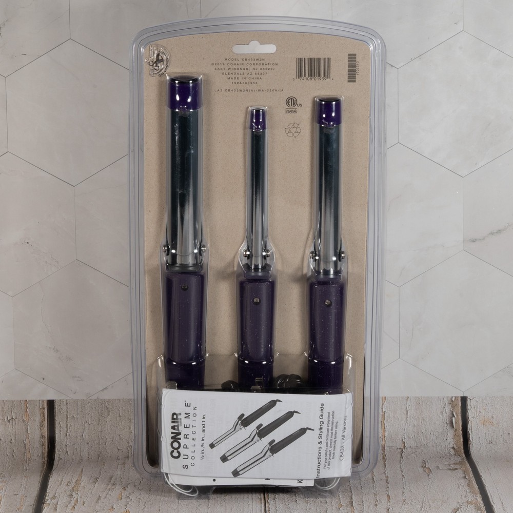 Conair Supreme Triple Value Pack Curling Irons, Purple/Silver, Pack of 3 Irons