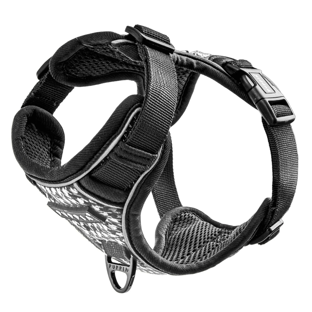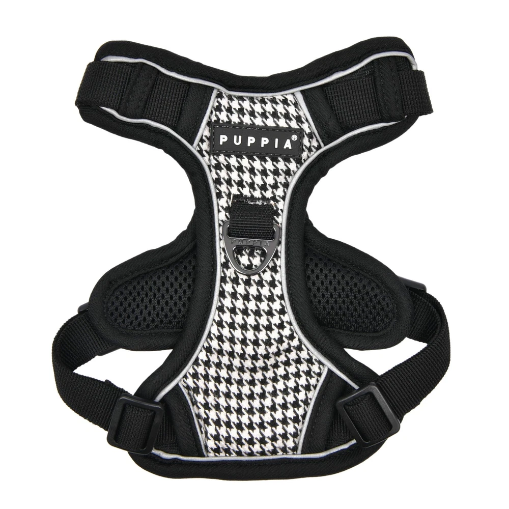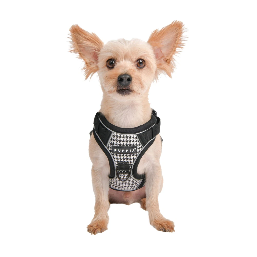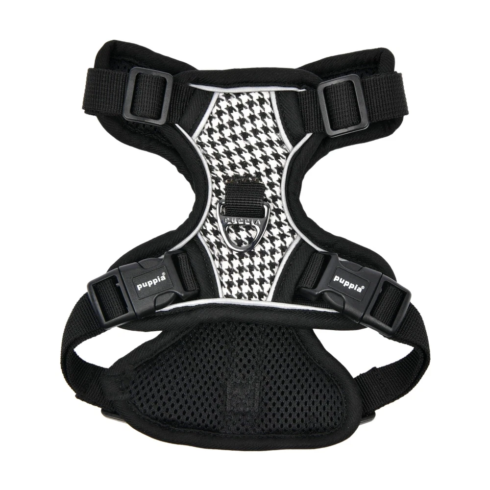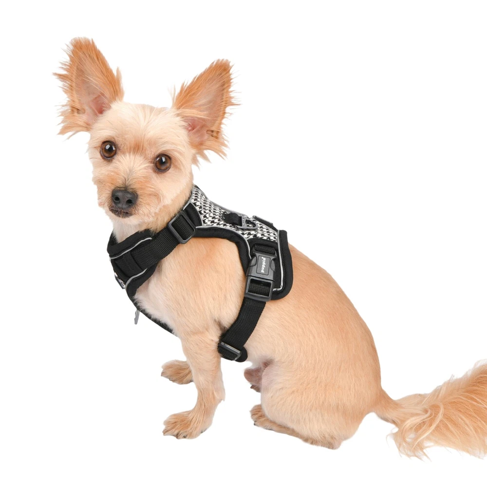 The Conall Harness H features a houndstooth pattern and solid schemed, Reflective straps, and Front and Back D-rings for lead attachment. It is a sturdy dog harness that is adjustable neck and chest with a buckles and straps and rubber label on the chest. Available in Brown and Black in sizes ranging from Small to XX-Large. New H style harness as "Harness H" Houndstooth pattern and solid schemed Front and Back D-rings for lead attachment Adjustable neck and chest with a buckles and straps & Reflective straps Size: Small: 7.9"~10.9" Neck, 12.9"~15.2" Chest, 4.3" Product Length