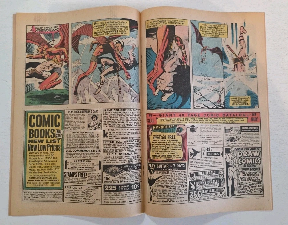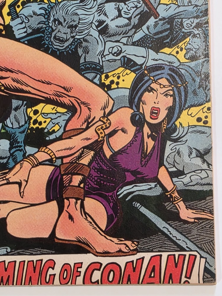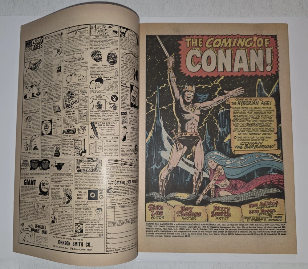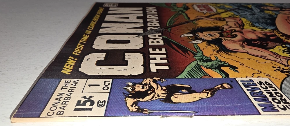 The product is a vintage comic book from 1970 featuring the first appearance of Conan in the Conan the Barbarian series, with cover art by Barry Windsor-Smith. This key issue from the Bronze Age of comics is a single unit in English language, published by Marvel Comics in the United States. It is a color comic book with a focus on adventure and fantasy, written by Roy Thomas, Sal Buscema, and Chic Stone. The comic book is a collectible item for fans of Conan the Barbarian and US Comics. - Complete, cover colorful and vibrant, Interior is stellar and staples intact. Reading crease on top left side of cover and a couple spine ticks but otherwise in great condition, see pictures - Bagged and boarded - Shipped with Gemini packing to insure no damage during shipping - Usps Priority insured Check out our 1000s of comics in our store We combine shipping