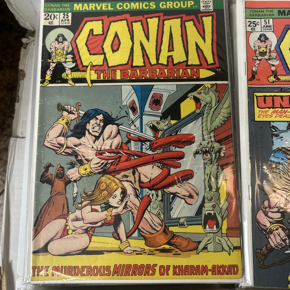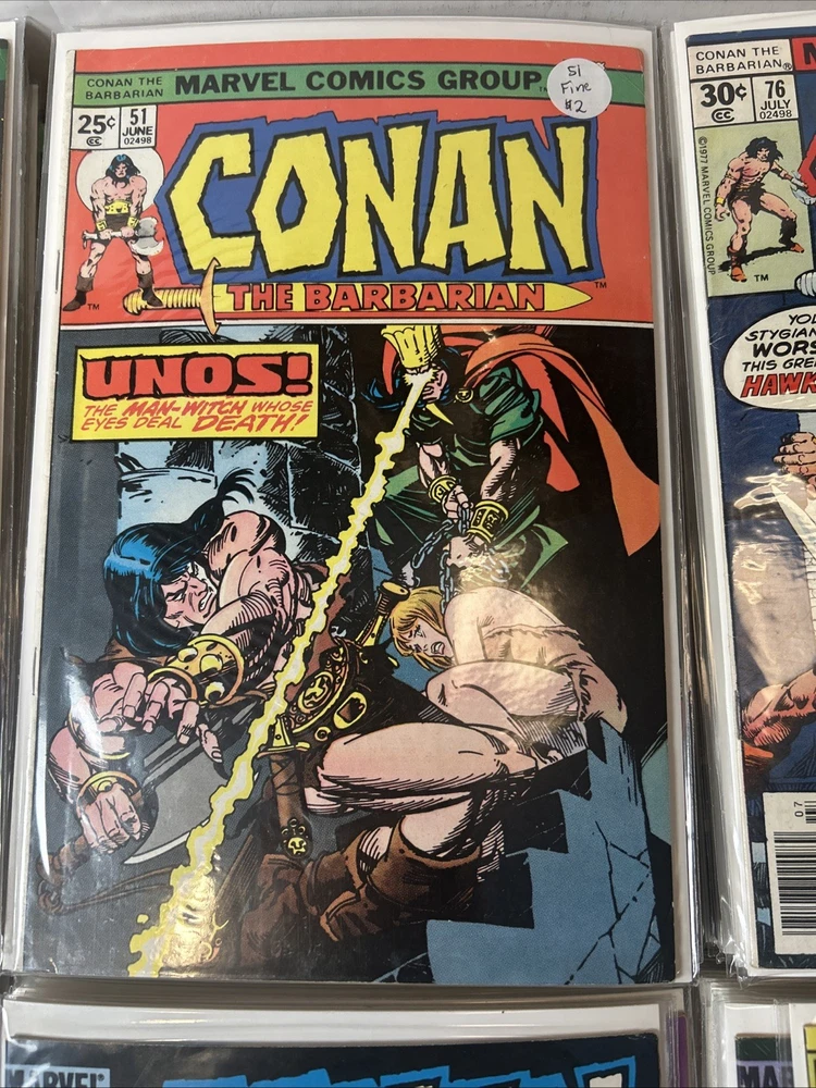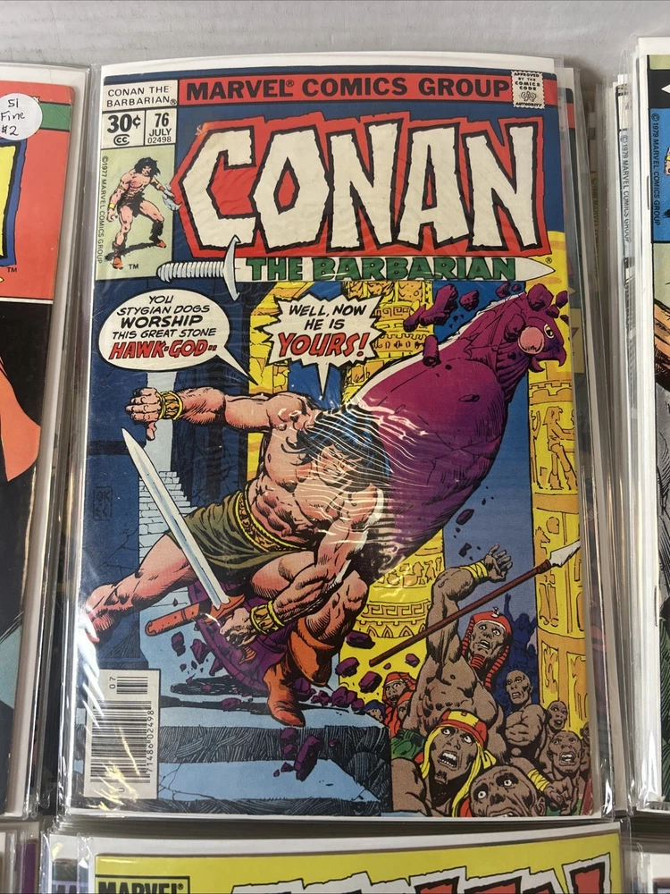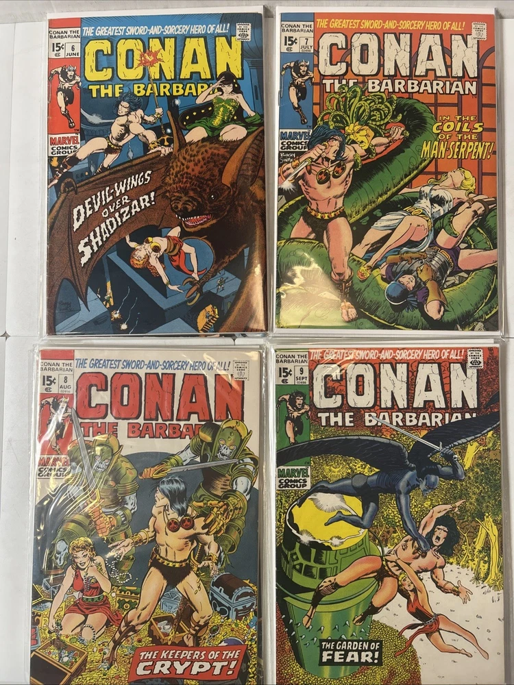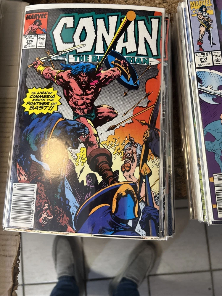 Complete Run With All Annuals and Giant Sizes, including all the early Barry Windsor Smith issues. #24 First Full Red Sonja is High Grade. Nice Overall Condition on most books The product is a complete collection of Conan the Barbarian comic books, including issues #1-275 and annuals 1-12, all published by Marvel Comics starting in 1970. The series features the character Red Sonja and takes place in the universe of Conan the Barbarian. These classic US Comics offer readers a thrilling adventure with iconic illustrations and engaging storylines, making them a valuable addition to any comic book collector's library. 1 FN 6.0 2 FN + 3 VG 4 FN+ 5 VF- 6 FN+ 7 FN+ 8 VG+ 9 FN/VF 10 FN- 11 VG+ 12 VG+ 13 FN+ 14 FN 15 FN+ 16 VF 17 VG 18 FN 19 VF- 20 VG+ 21 VG+ 22 FN 23 FN+ 24 VF 8.0 25-100 Mostly VG-VF 101-275 Mostly FN/VF-NM Annual 1 FN- Annual 2-12 FN-VF+ Giant Size 1 VF, 2 VG+, 3 FN, 4 FR (spine split), 5 VF Bagged and boarded