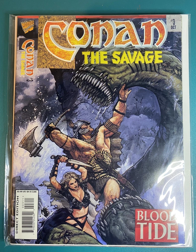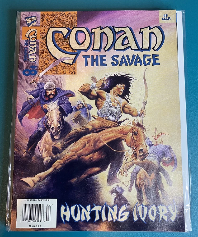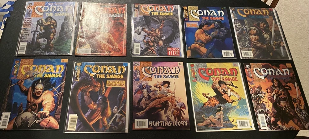 This is the entire magazine set of the Conan the Savage. Very good condition overall but not NM. In fact #8 has a little water damage and #7 has a sticker on it. The rest are pretty good (but can use a press) if trying to submit them for grading. Please see pictures and ask questions!