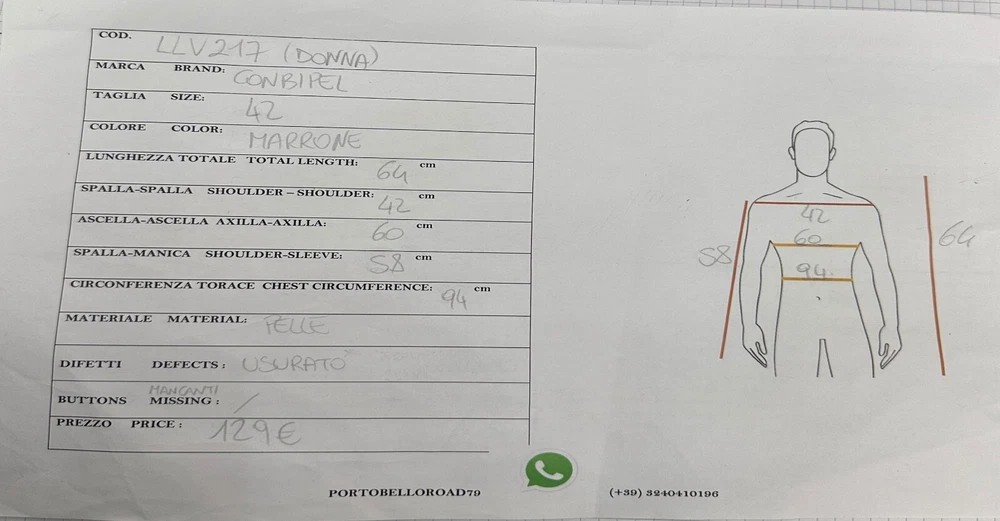 Vintage:YesColor:BrownClosure:ButtonDepartment:womanBrand:Conbipelgtin13:Does not applyStyle:JacketType:JacketSize:42Outer Shell Material:LeatherUPC:Does not applySize Type:Regular