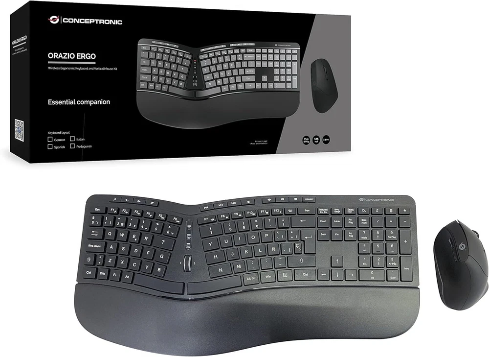 Conceptronic ORAZIO02ES Ergo Wireless Ergonomic Keyboard and Vertical Mouse Set