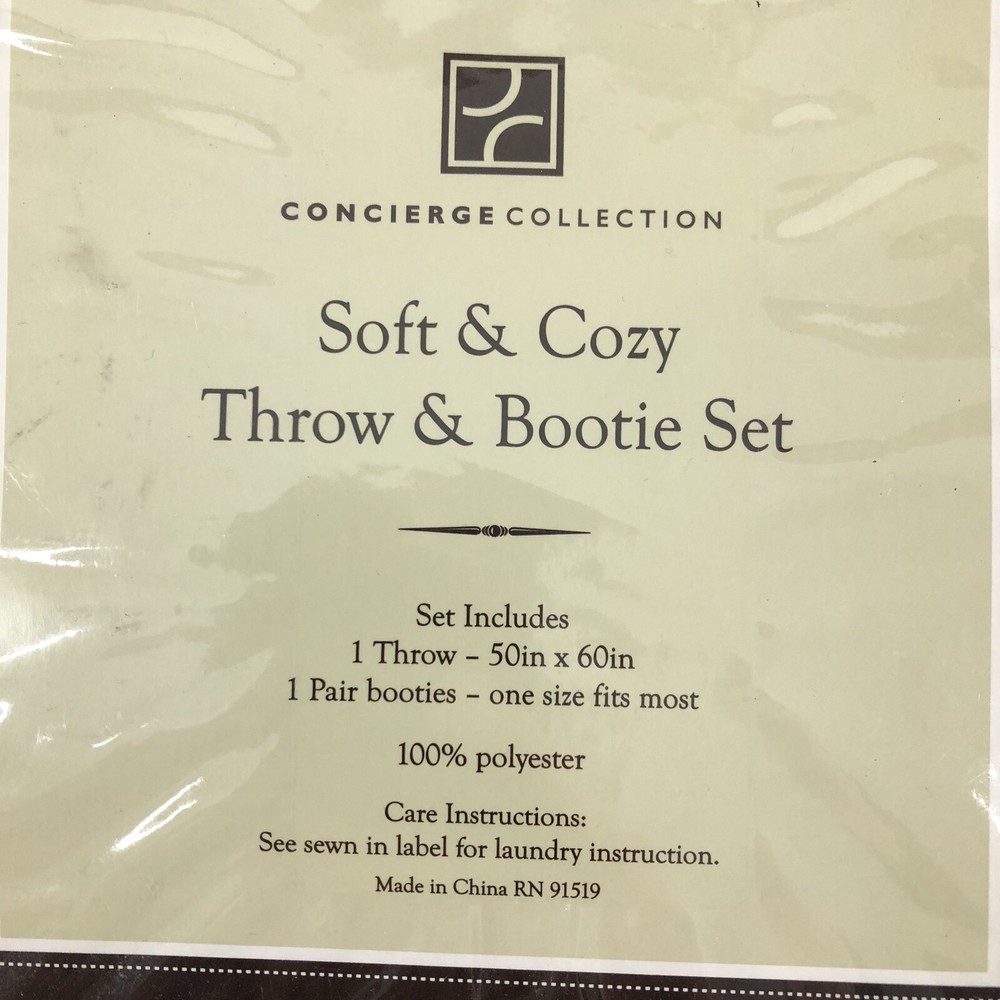 Indulge in luxurious comfort with this Concierge Collection throw and bootie set in a soft plush snow leopard white color. Perfect for all seasons, this blanket is made of high-quality polyester material and features a solid color pattern. Measuring 50 inches in length and 60 inches in width, it's the ideal size for snuggling up with on chilly nights. The set comes with one throw and one pair of booties, making it a perfect addition to your bedroom decor. The plush material and cottage-style design add a touch of elegance to your home. The item is ideal for adults and is part of the Angel character family theme. Get ready to experience ultimate comfort with this Concierge Collection throw and bootie set.