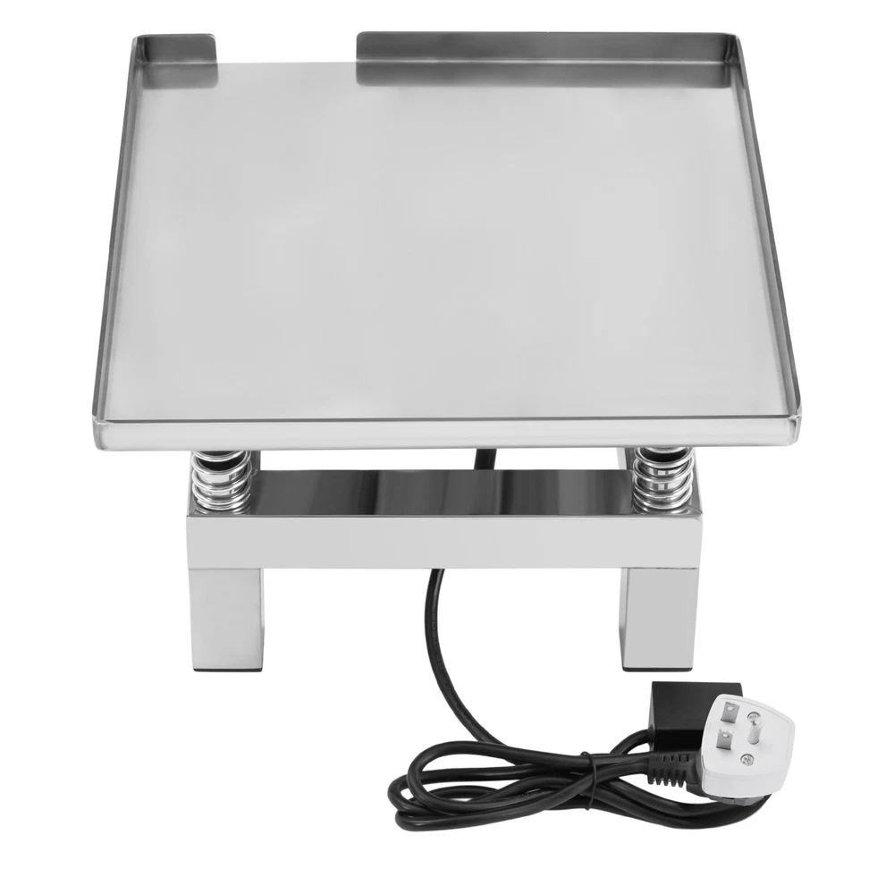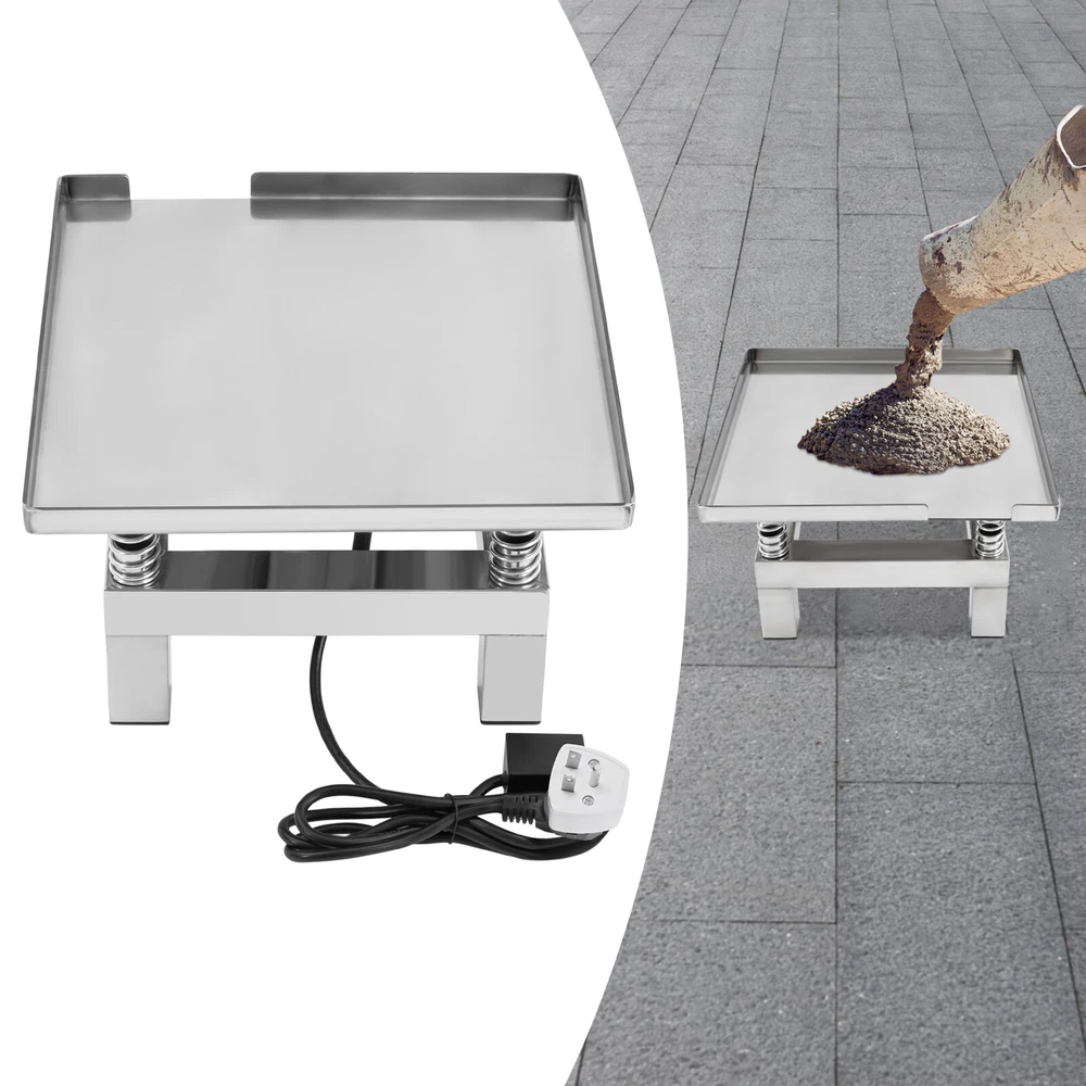 Concrete Vibrating Table, Vibration Platform, Vibration Table Description Description With its compact dimensions, high performance, and reliability, this concrete vibrating table is highly sought after in the field of construction materials testing and is particularly suitable for making concrete test blocks where accuracy is required, such as strength test specimens. Its precise vibration frequency and even distribution of vibration forces ensure that air bubbles are effectively removed from the concrete mixture, thus improving the density and strength of the finished product. Key Features Durable and Sturdy: The main structure is made of high-quality stainless steel, which is not easy to rust, corrosion, and deformation, to ensure stability and durability under long-term use. Large Capacity: The sturdy structure and four load-bearing springs allow it to hold more concrete at one time (about 22.05 lbs), which effectively reduces your working time and the number of operations. High-efficiency Vibration: Driven by a high-performance all-copper-wire motor, it can provide stable and powerful vibration (3000-3600rpm), accelerating the concrete compacting process, reducing air bubbles, and improving the quality of products. Easy to Clean: The platform surface is smooth and seamless, which is easy to clean quickly to avoid concrete residue and keep the working environment neat and hygienic. Easy to Operate: The product has a simple structure and does not require complex operating procedures, so even newcomers can get started quickly. Ease of Movement: Compact size (13.78*13.78*8.66in) makes it easy to move around the lab or construction site, providing high flexibility of use. Ready to Use: The integrated design makes it easy for you to plug it in and use it as soon as you get it, so you don't have to do any additional installation. Customer Service: We aim to provide quality products and services. If you have any problems, please feel free to contact us. We will reply and solve the problem for you as soon as possible. Details Raised Baffle: 0.98in baffle prevents spills and leaks during concrete vibration. High-quality Springs: They help to remove air bubbles inside the concrete faster and improve the compactness and uniformity of the concrete. Smooth Edges: The smooth and burr-free edges enhance the beauty of the product and better care for your skin when installing and cleaning it. Application It can be used for mold vibration molding, increasing the firmness of concrete, shaking the settling liquid, mold filling, durability test experiments and so on. Specification Material: Stainless Steel Motor Type: All-copper Wire Motor Color: Silver Shape: Rectangular Mount Type: Tabletop Mount, Countertop Assembly Required: No Number of Springs: 4 Power: 50W Plug Type: US Standard Power Source: Corded Input: 110V Maximum Load: About 10kg/22.05lbs Vibration Frequency: 3000-3600 rpm Amplitude: 1-2mm/0.04-0.08in Baffle Height: 2.5cm/0.98in Product Size: 35*35*22cm/13.78*13.78*8.66 in Package Size: 38*38*25cm/14.96*14.96*9.84in Net Weight: 6.5kg/14.33 lbs Gross Weight: 8kg/17.64 lbs Package Included 1* Concrete Vibrating Table Notes Please check the style and size before purchasing. Please do not put it on tiles or slippery floors. To ensure better use, you can prepare silicone pads(not included) under it or put it on a tabletop with better friction. It's normal to work hot, please do not put it to work in a very hot place. Please allow the slight color difference caused by the shooting light and 1-3cm error due to manual measurement and make sure you do not mind before ordering. Description Payment Delivery details Terms of sales About us Contact us Payment We accept ebay payment 。 Fees such as import duties, taxes are not included in the item price or shipping costs. These charges are the buyer's responsibility. Delivery details Shipping: 2-9 working days to: USA Terms of sales We maintain high standards of excellence and strive for hundred percent customer satisfaction. Feedback is very important to us. We hope that you contact us immediately before you give neutral or negative feedback, so that we can address your concerns. It is impossible to address issues if we do not know about them! About us Your satis faction is our ultimate goal. We work hard to earn your trust and future business. Our certified technicians have tested each item before shipping. The unit comes with 1 year limited warranty on all manufacturing defects. a) If you receive a defective item, you may return it or ask for a discount. Please contact us within 14 days after you receive the package. b) What you returned must be intact and in its original packaging as re? u. Customer is responsible for shipping costs of the returned item. c) We will cover the cost of shipping back t with the shipping rate indicated in the registration page. We will send you a new unit or refund the full payment you paid. Thank you. Contact us Business Hour Business Hour: Monday To Friday: 8:30 AM to 5:00 PM (Beijing China time) Due to time zones, our reply to your questions may not be immediately. But within above working time, we will reply your email within 24 hours. If it's non-workdays, please kindly be patient and wait till Monday. Please contact us with ebay message. Please feel free to contact us if you have any questions. Monday To Friday: 8:30 AM to 5:00 PM (Beijing China time) Due to time zones, our reply to your questions may not be immediately. But within above working time, we will reply your email within 24 hours. If it's non-workdays, please kindly be patient and wait till Monday. Please contact us with ebay message. Please feel free to contact us if you have any questions. Feature 2 Special Fashion Design shipping notice Can not ship to Puerto Rico,Alaska/Hawaii 1.Feature* Unique Appearance,Great Durability 2.Feature* Compact Design,Convenient Use 2.Highlight! Fast shipping~ 1.highlight High-quality product! Highlight^* High quality wi