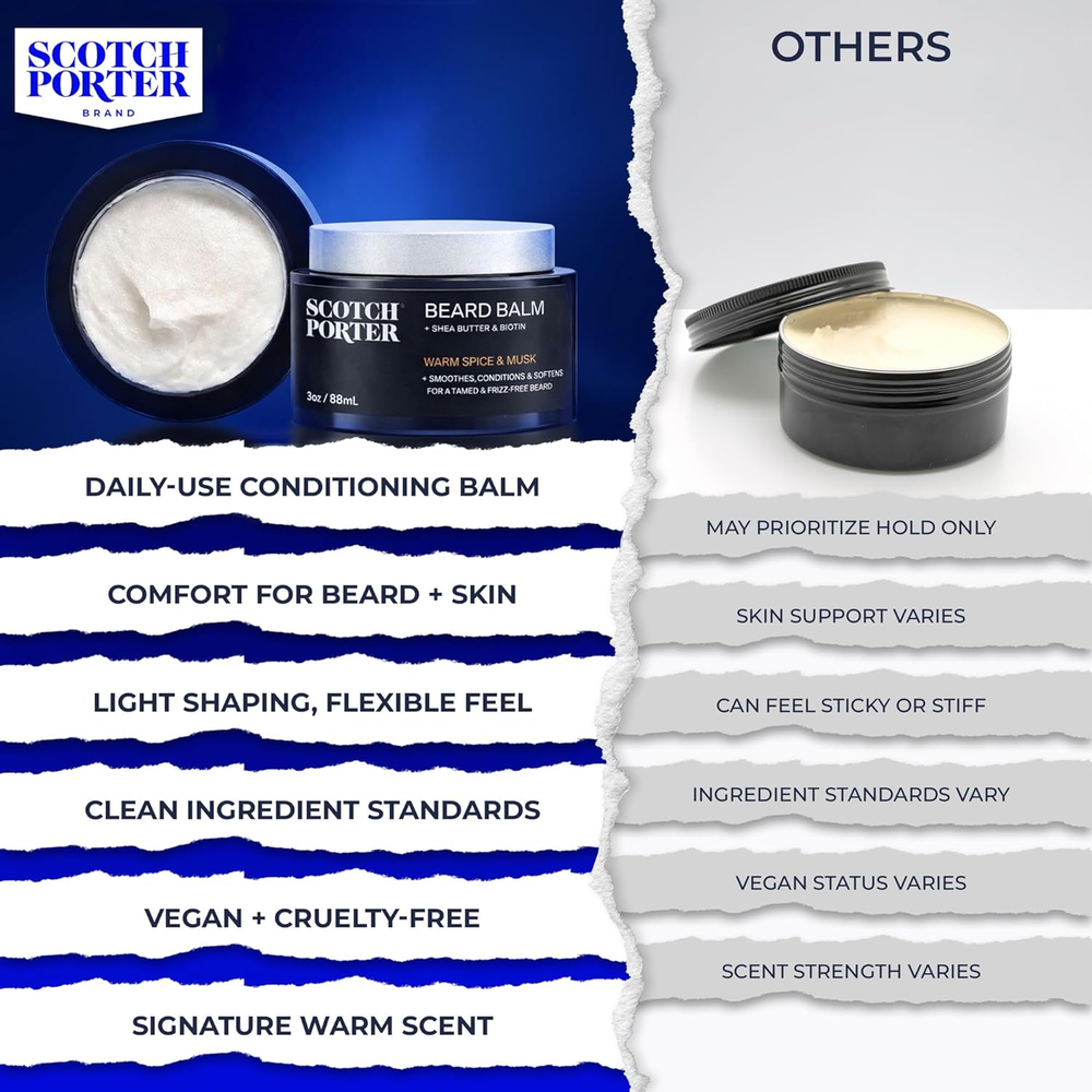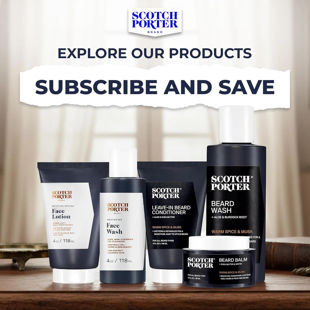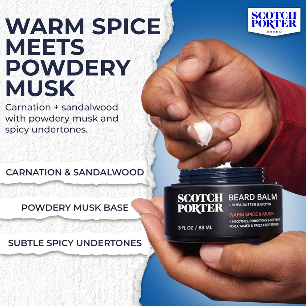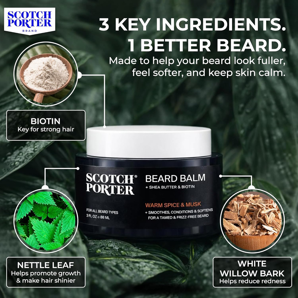 Store New Arrivals Add to Favorite View Feedback Contact Conditioning Beard Balm – Smooth, Shape, Moisturize & Soften Coarse, Dry Facial Hair While Encouraging Growth for a Fuller/Healthier-Looking Beard – Original Scent, 3 Oz. Jar Description Hair Type Dry Scent Balm | Original Product Benefits Hydrating Material Feature Natural, Paraben Free, Vegan Item Form Cream Package Dimensions 3.27 x 3.19 x 2.05 inches; 3 ounces Sculpt a Softer Beard that’s Smooth Like Butter: Work in a dab of our rich balm for instant conditioning, a moisture boost, and a blessing to both your beard, mustache and skin underneath, kicking off your journey to a full, healthy-looking beard with long-lasting shine Encourage Thick Growth: Our clean, non-toxic beard balm is infused with Biotin Liposomes and Nettle Leaf to help build strength and promote healthy facial hair growth, as well as White Willow Bark to help reduce irritation, redness, and flakiness Warm Spice & Powdery Musk: Masculine meets floral in a blend of carnation and sandalwood, powdery musk and spicy undertones Selected for Potency and Purpose: Our ingredients are precisely tailored to deliver grooming excellence for men – providing style, minus the empty promises.; devoid of sulfates, silicones, and parabens, and with a commitment to vegan and cruelty-free practices, we ensure each blend is clean and genuine, every time Uncompromising, Like You: Birthed from Calvin Quallis’ vision in 2015, Scotch Porter is the gold standard of clean, non-toxic grooming – no compromises, just premium performance for the man who demands everything Product description The video showcases the product in use. The video guides you through product setup. The video compares multiple products. The video shows the product being unpacked. 1 Biotin Liposomes 2 Nettle Leaf 3 White Willow Bark Add to Cart Add to Cart Customer Reviews 4.6 out of 5 stars 1,923 4.6 out of 5 stars 850 4.4 out of 5 stars 3,936 4.4 out of 5 stars 3,674 4.6 out of 5 stars 134 4.6 out of 5 stars 918 Price — — $11.39 $ 11 . 39 $14.58 $ 14 . 58 — — What it does Cleans & refreshes Hydrates, smooths & defines Softens & hydrates Encourages growth & conditions Seals in moisture & shine Cleans, conditions, & styles Key ingredients Burdock root, aloe vera Biotin liposomes, aloe vera Biotin liposomes, willow bark Biotin liposomes, nettle leaf Jojoba & avocado seed oils Biotin liposomes, willow bark No Sulphates or Phthalates ✔ ✔ ✔ ✔ ✔ ✔ Cruelty Free ✔ ✔ ✔ ✔ ✔ ✔ Vegan ✔ ✔ ✔ ✔ ✔ ✔ ABOUT US We offer the best prices around on high quality products. Our E-store includes media such as books, movies, music and games while offering electronics, toys, sporting apparel, clothing, tools, general home, garden items and more. SHIPPING We are always working hard to ensure your package arrives as soon as possible. Please understand that some factors like weather, high postal traffic, and the performance of shipping companies are outside of our control. We offer free shipping to the lower 48 states and ship within 2 business days of payment, usually sooner. We do not accept P.O. Boxes. Please provide a physical address. For shipping outside of the continental USA, we only use eBay's Global Shipping Program.The item is shipped to KY and then sent to the rest of the world. International customers are responsible for all duties and taxes. Continue to check out in order to calculate costs for shipping the item to your country. Messages regarding eBay's Global Shipping Program MUST be directed at eBay EXCLUSIVELY. RETURNS We offer a 30-Day Return Policy on items which you are not completely satisfied with. You have the option for a full-refund or an exchange of the item. No returns are available on items shipped outside of the USA. PAYMENT We accept PayPal. CONTACT US This page content is yet to come Please ad us to your favorite seller and visit again later Thank You CUSTOMER SATISFACTION We try our very best to make sure every customer is completely satisfied. If there's a problem, message us! We're happy to help. WE ACCEPT Copyright © 2021 AutoDS. | All Rights Reserved
