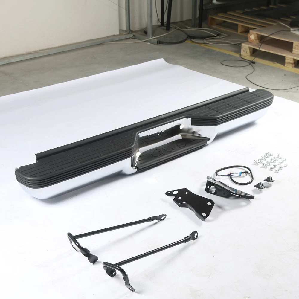 Compatible With: - For 1993 - 1999 Chevy Suburban 1500/Tahoe - For 1993 - 1999 GMC Yukon/Suburban Type:Rear Bumper Color:Silver Finish:Chrome Material:Steel Fitment Type:Direct Replacement Hardware Included:Yes Includes:- 1×Rear Bumper - 1×Pair of License Plate Light - 2×Brackets - 1×Bag of Bolts On Jun 13, 2024 at 20:21:12 PDT, seller added the following information: On Jun 15, 2024 at 14:03:58 PDT, seller added the following information: On Dec 3, 2024 at 12:35:32 PST, seller added the following information: