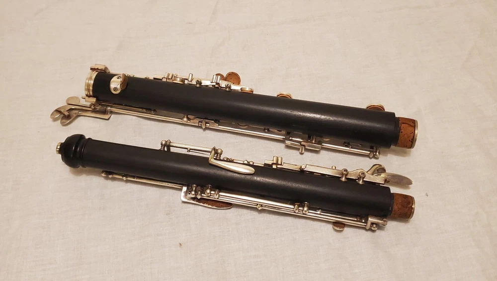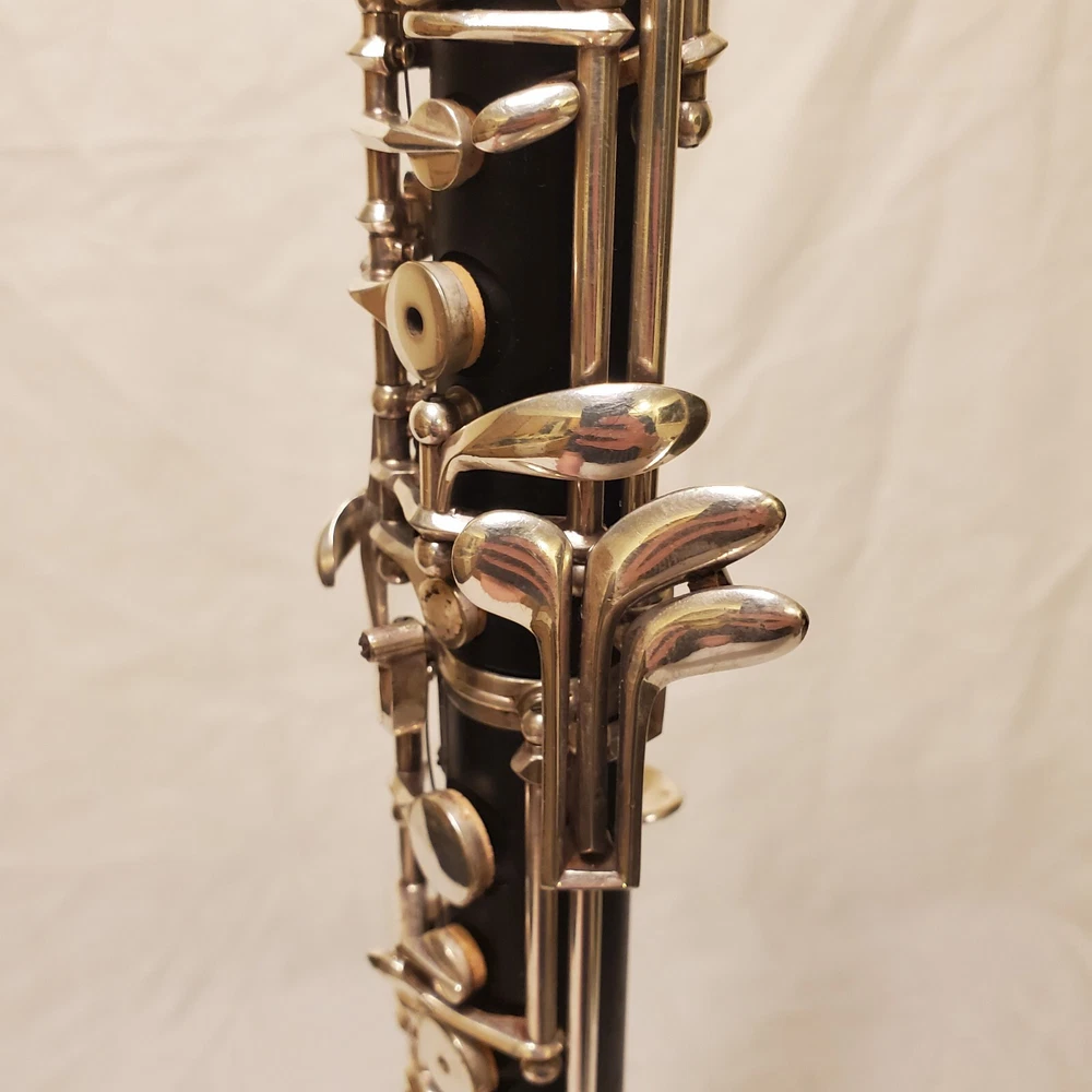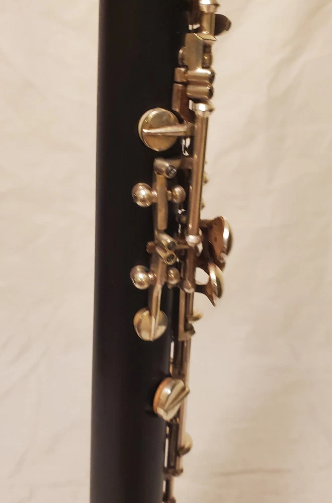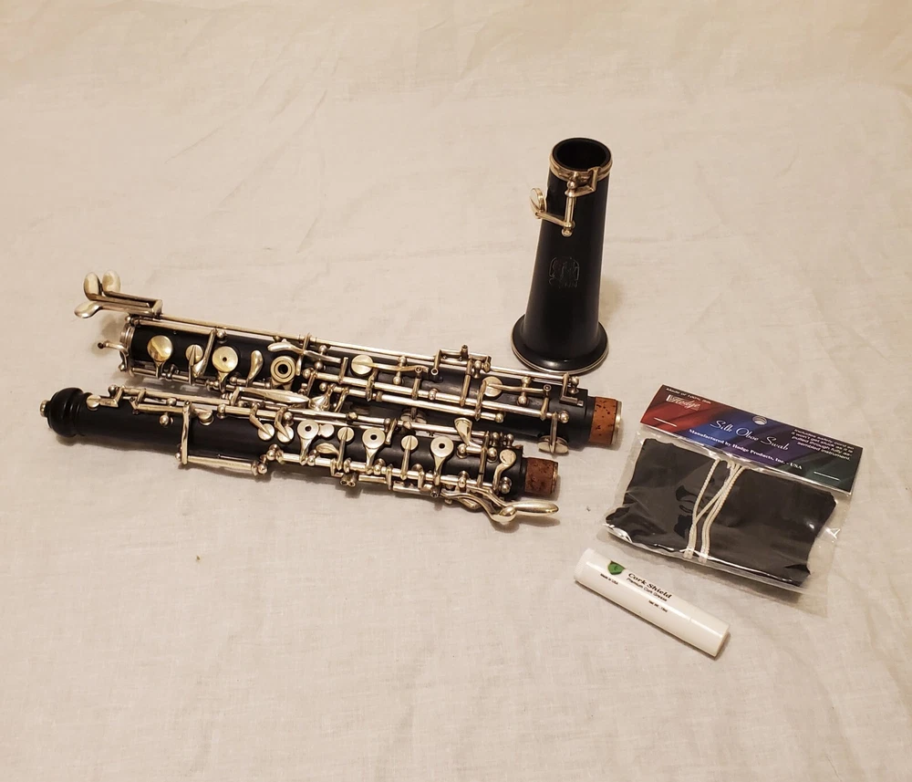 A great step-up oboe for a student or hobbyist! This oboe was serviced less than a year ago and underwent a full overhaul. It still looks and plays well! This oboe has a semi-automatic octave mechanism and keys that beginner oboes typically do not have: a G#-A trill key, an alternative C ("banana") key, and a resonance key for forked F. There are very minor cosmetic blemishes that do not affect the playing of the instrument. There is a small crack on the bell, but it does not affect the Bb coming out. The case is in good condition for its age. There are scuffs on the outside, however, the latches and other mechanisms work. The inside is clean but does have some worn parts where keys sit (the oboe is still protected well). Comes with: Original Conn case New Hodge Swab New tube of cork grease *Oboes (particularly wooden ones) are sensitive instruments that can be affected by the weather/ climate and have the slim possibility of needing to be slightly adjusted by its adjusting screws when changing locations*