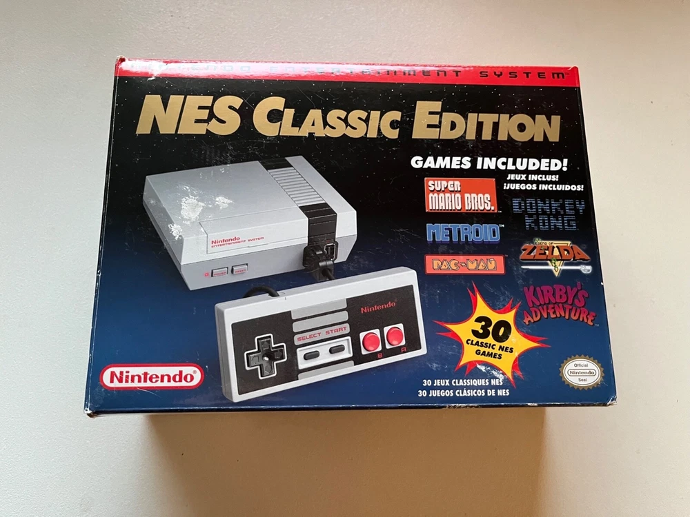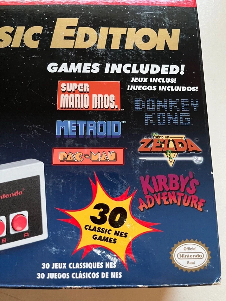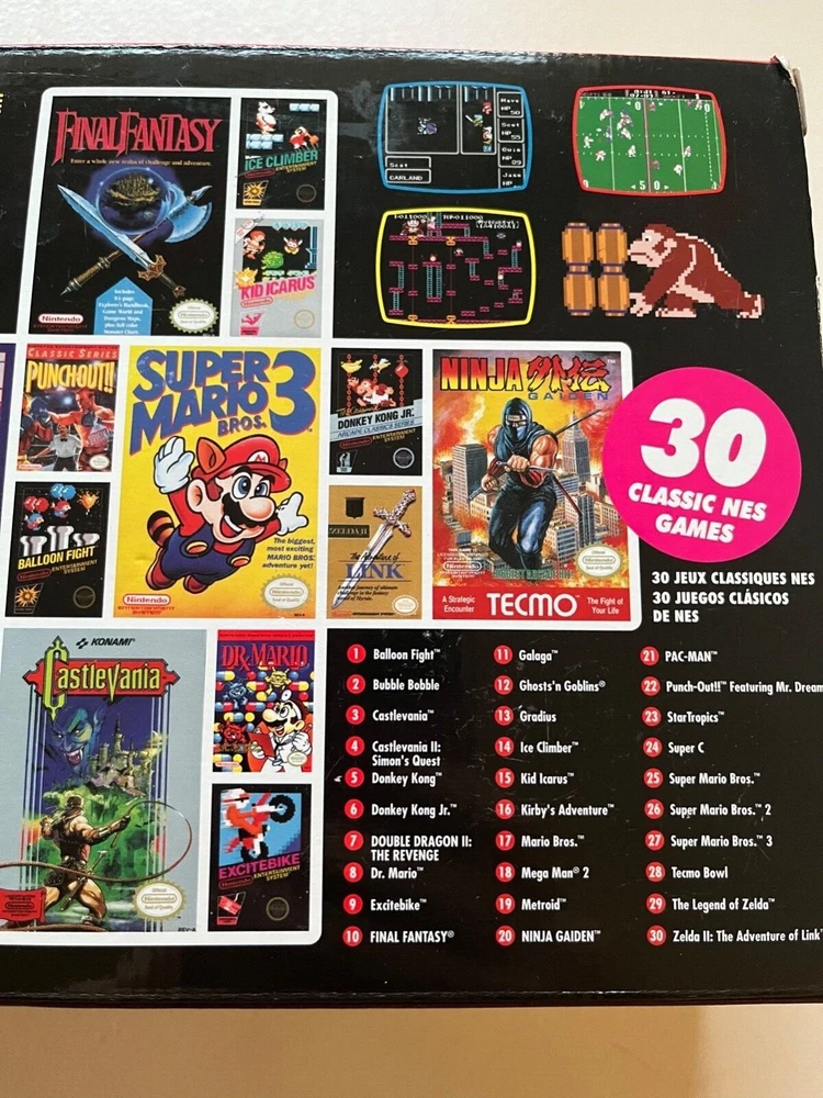 NEW Nintendo NES Retro 2016 Gaming System Console 30 Games Super Mario Pac-Man Zelda, Kirby, Balloon Fight, Bubble Bobble, Castlevonia, Donkey Kong, Double Dragon, Dr Mario, Excitebike, Final Fantasy, Galaga, Ghost Gobblins Gradius, Ice Climber, Kid Karus, Kirby's Adventure, Mario Bros, Mega Man, Metroid, Ninja Gaiden, Punch Out, StarTropics, Super C, Super Mario Bro 1,2,3. Tocano Bowl, Zelda 2 New in Original Box Shipping via USPS Priority for insurance Weight in Pictures