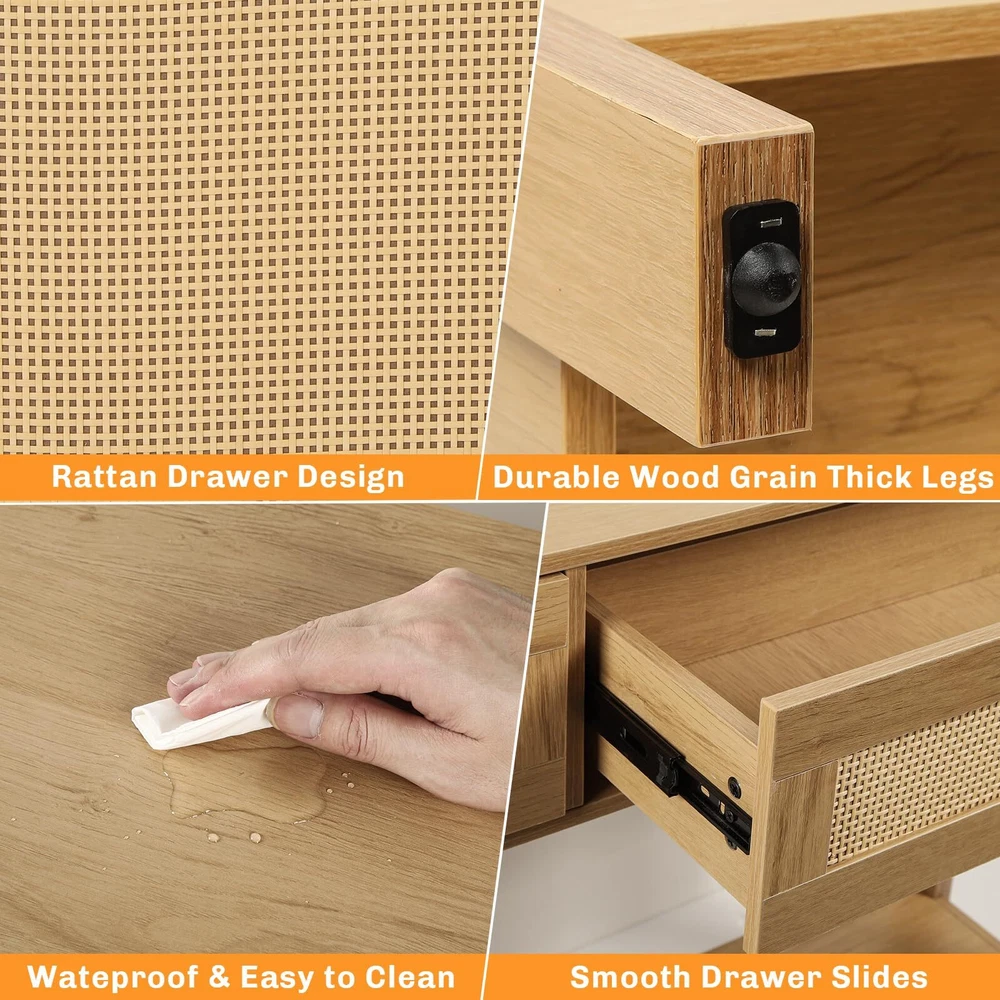 Designed with engineered wood wood grain and rattan-decorated drawers, has a clear texture. The classic design blends well with any style of decor, adding a sense of elegance to your room. Sized at 11.8"D x 43.3"W x 31.5"H [Storage Aplenty] This entryway table features 2 spacious drawers and a 2-tier storage shelf, used for storing and organizing your items. Make your desktop neater. Bouquets, scents candles, photos, books, or other items, everything has a suitable place to display. [Built to Last] Sturdy wooden material enhance safety and stability, making it last for long-time use. The back of the table has anti-toppling fittings to keep the console table stable. The Anti-Slip& mute sticker design at the bottom of the table corner protects the floor and prevents the table from tilting. [Versatile Uses] This hallway table works great as a console table, sofa table, entry table, small TV table, and coffee bar table. The appropriate size makes this entry table perfect for the living room, bedroom, dining room, foyer, balcony, office, and so on. Saving a lot of space for your living space. [Satisfaction Service] This entry table comes with all the accessories and instructions for quick setup. Please feel free to contact us with any questions and we will reply within 24 hours. For safety, be sure to secure the dresser to the wall with the included anti-tip kit. - There may be a smell of ""new"" when first opening the package; please air the dresser out in a well-ventilated place for a few hours."