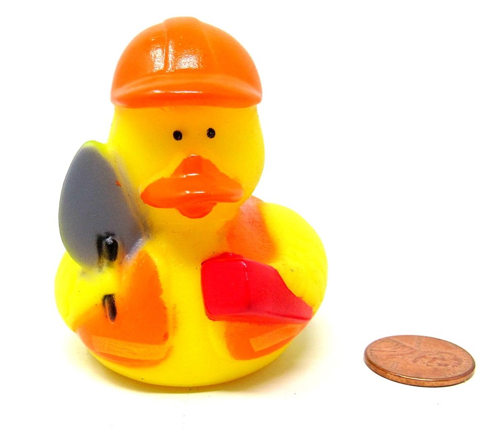 Construction Worker Rubber Duck, 2", Shovel, Yellow Hard Hat, Squirter, Desk Decor, Bath / Spa Toy. Use as gift tie, party favor, float in hot tub, stocking stuffer or gift basket. Condition - New. Perfect condition. Never used. There may be slight paint smudges from manufacturing. Not Recommended - for Children Under 3 Years of Age. Actual Size - 2 " tall Penny is not included. Squirter - There is a hole in the beak. Not guaranteed to float upright. Stored in & Ships from our smoke free - pet free home. More than just a pretty picture. Try Vendio Image Hosting. FREE scheduling, supersized images and templates. Get Vendio Sales Manager. Over 100,000,000 served. Get FREE counters from Vendio today!
