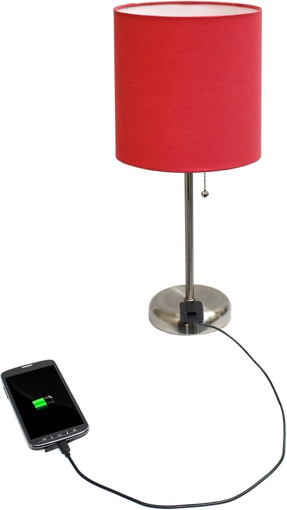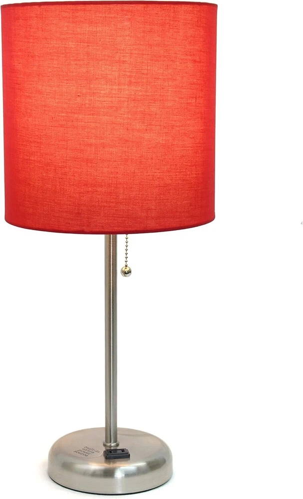 Light Color: White Item Weight: 3.1 pounds Bulb Shape Code: A19 Shade Shape: Drum Light Source Type: Led Department: Unisex Baby & Toddler, Adults, Teens, Kids Switch Type: Pull Chain Power Source: Corded Electric Finish Type: Brushed Lighting Method: Led Shade Color: Red Personalize: No Brand: Unbranded Color: Red UPC: Does not apply Wattage: 60 Watts Power Consumption: 60 watts Lamp Type: Table Lamp Mounting Type: Tabletop Shade Material: Alloy Steel Item Diameter: 8.5 in Number Of Items: 2 Type: Table Lamp Features: Power Outlet Feature, Charging Outlet, Energy Efficient Control Style: Pull Chain, Touch Style: Contemporary gtin13: Does not apply Finish: Brushed Bulb Base: E26 Medium Base Material: Metal Included Components: Shade Room: Living Room, Hallway, Bedroom, Kids Room, Nursery, Office, College Dorm Room Type: Kids Room, Office Product Dimensions: 8.5"d X 8.5"w X 19.5"h Special Feature: Energy Efficient Connectivity Technology: Usb Bulb Shape Size: A19 Voltage: 120 volts Recommended Uses For Product: Decoration Lighting Technology: LED Material: Steel, Metal, Fabric, Iron, Alloy Steel Is Waterproof: False