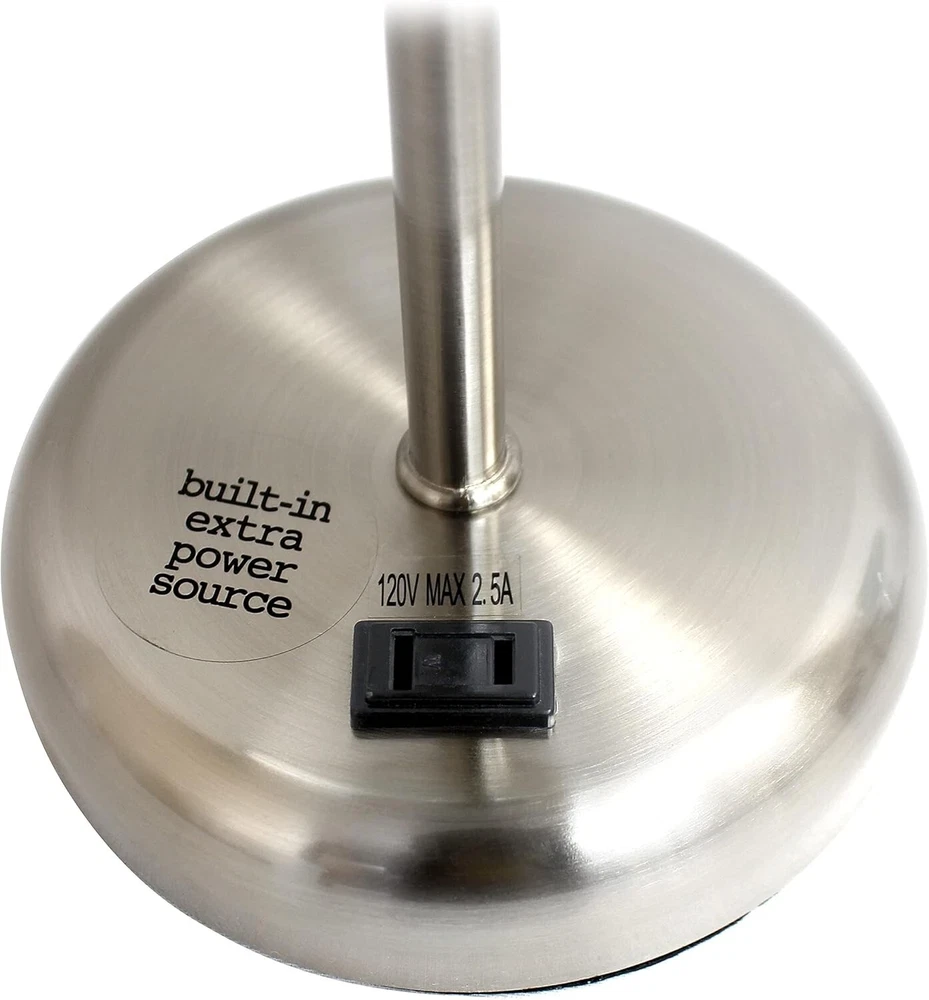 Contemporary 2-Pack Brushed Steel Desk Lamps with Built-in USB Charging Outlet