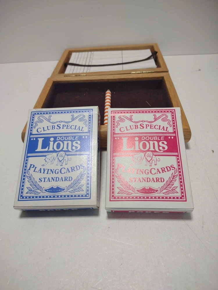 Contract Bridge Game Box 2 Decks Double Lions Playing Cards Pencil Score Sheets