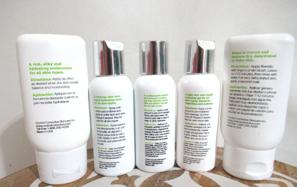 5 Piece Set of Control Corrective Skincare System 1X Ceramide Daily Cream - 2.5 oz 1X Thermogel Mask - 2.5 oz 1X Balancing Tonic 2 fl oz 1X Cucumber Bead Cleanser - 2 fl oz 1X Gentle Facial Wash - 2 fl oz Brand New Without The Original Boxes - The bottles do not have seals on them (they never did, they were removed from the sealed boxes but never used) Please see all photos as they are part of the description All products are Original Authentic Brand Names, I do not sell knock-offs or imitations ** I am in no way associated with this brand, therefore any assumed or implied guarantees, warranty and or return policy, associated with this brand are not covered. If you do have any issues or concerns please feel free to contact me. ** Attention VeRO members: I am not affiliated or endorsed by the companies mentioned in this listing. All trademarks and copyrights are acknowledged, they are only used for informative description of the items offered for sale. All items are authentic as evidenced in photos, legally acquired and owned, and hence covered under First Sale Doctrine. Warning. Everything sold into the state of California contains agents known to the state of California to cause cancer and birth defects, reproductive harm, or other, as yet unnamed, harm to its citizenry. I TRY MY BEST TO LIST EVERY ITEM AS ACCURATELY AS POSSIBLE, HOWEVER, I AM ONLY HUMAN AND SOMETIMES MISTAKES ARE MADE. I AM A VERY FAIR AND HONEST SELLER AND MY FEEDBACK AND EBAY REPUTATION ARE VERY IMPORTANT TO ME. I ASK THAT IF YOU HAVE A PROBLEM WITH YOUR PURCHASE PLEASE COME TO ME PRIOR TO LEAVING ANY TYPE OF FEEDBACK FIRST SO WE CAN WORK IT OUT