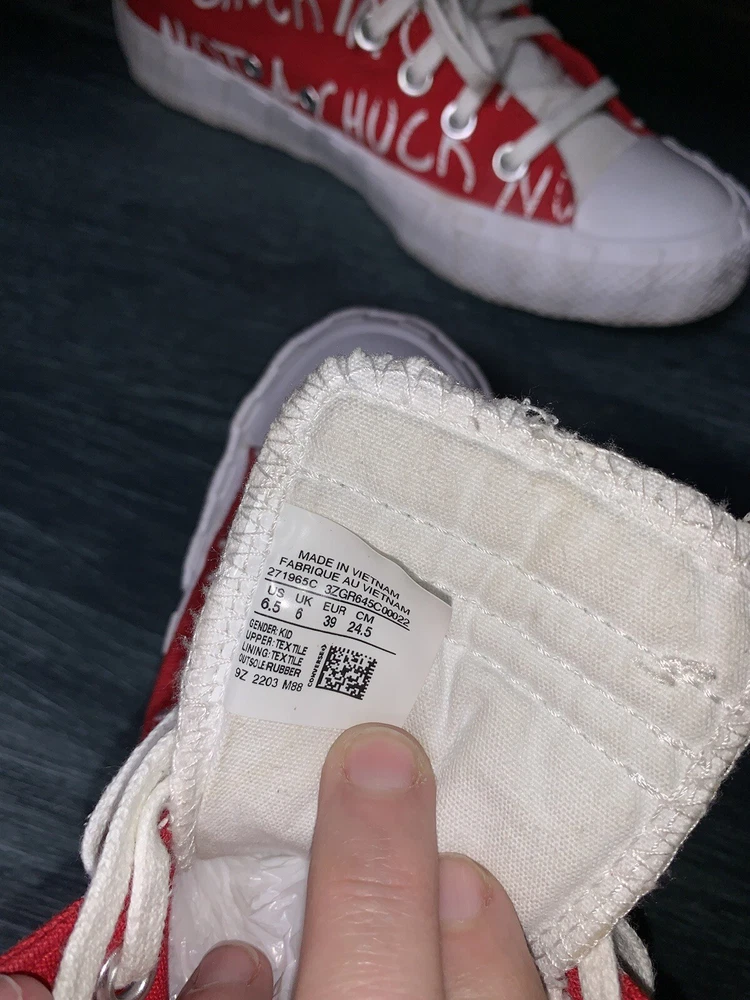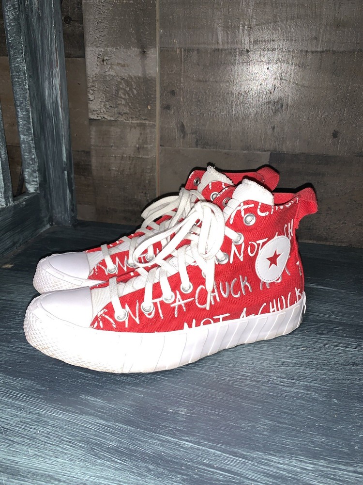 Converse All Star Not A Chuck Red hightop sneakers. They are a women’s 8.5 or youth 6.5. Excellent condition only worn a few times, do need a light cleaning.