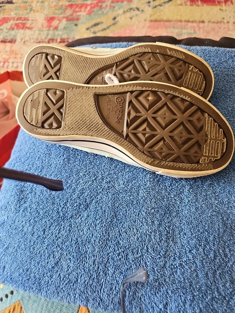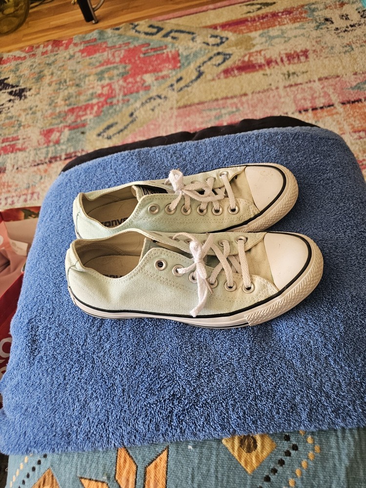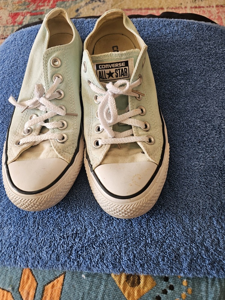The product is a pair of Converse All Star sneakers for women in a size 7, featuring a blue color with a star theme. These sneakers are a classic choice for casual and athletic wear, known for their comfortable and stylish design.