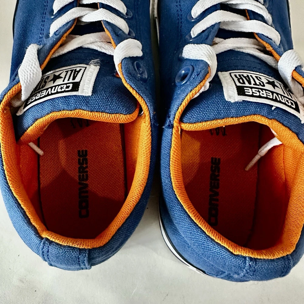 These sneakers are super comfy and in great condition! They fit perfectly even though they're junior size - I wear a women's 7.5 and they work great. The blue and orange combo is vibrant and perfect for showing team spirit. Love them!