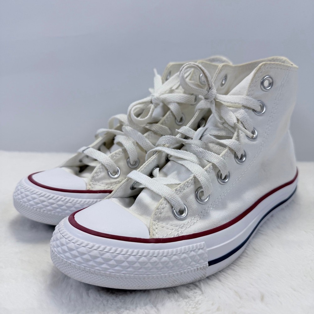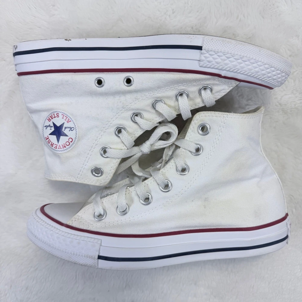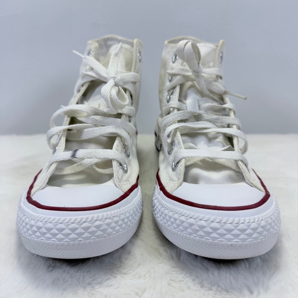 Converse Chuck Taylor All Star high top sneakers in classic Optical White, women’s US size 6. Timeless lace-up canvas sneakers featuring the iconic Chuck Taylor ankle patch and durable rubber sole — ideal for casual daily wear, street style, or classic wardrobe staples. These shoes are Pre-Owned and show normal signs of wear consistent with prior use (such as light creasing, minor scuffs, or outsole wear). Please review all photos carefully to assess condition and details before purchasing. Returns: Returns accepted. If a return is requested due to change of mind, fit, or any reason not related to an item being not as described or seller error, the buyer is responsible for return shipping. Original shipping costs are non-refundable.