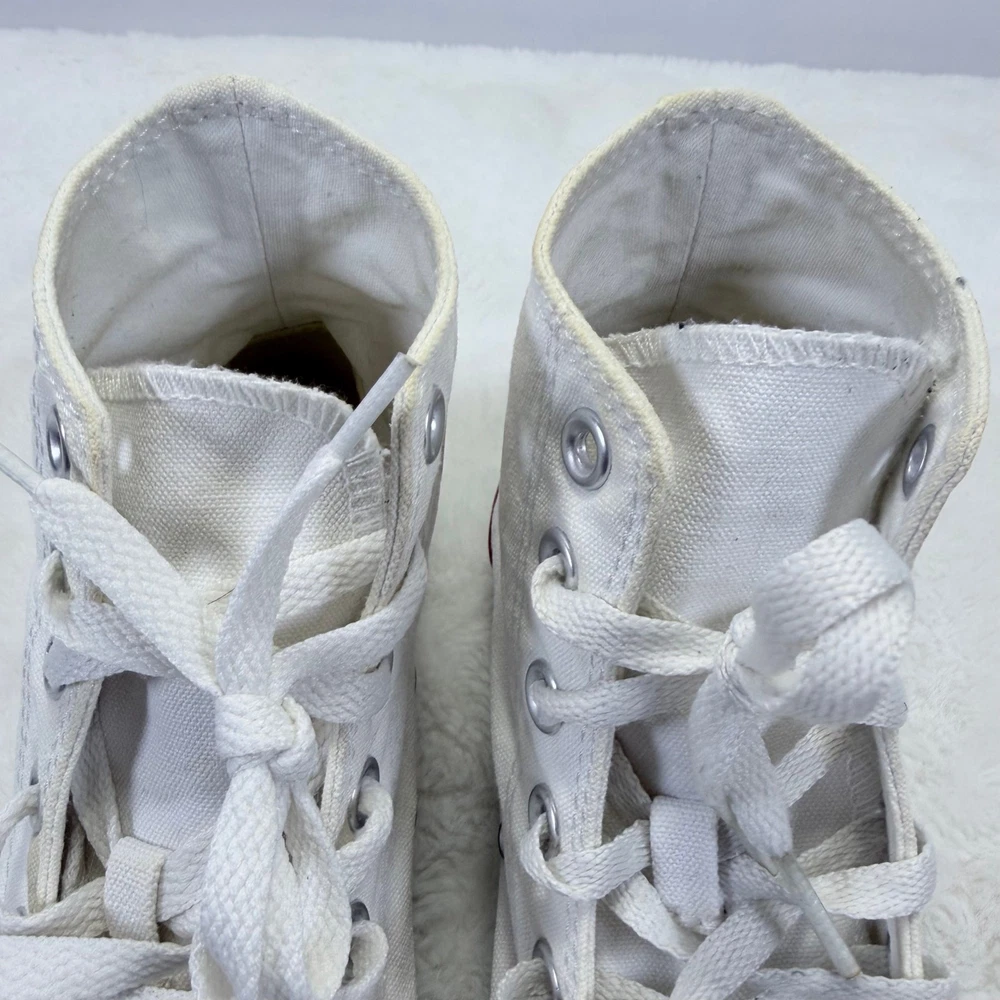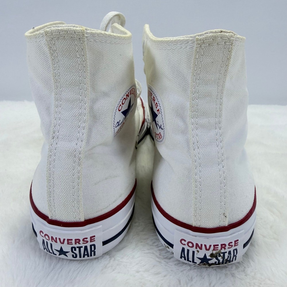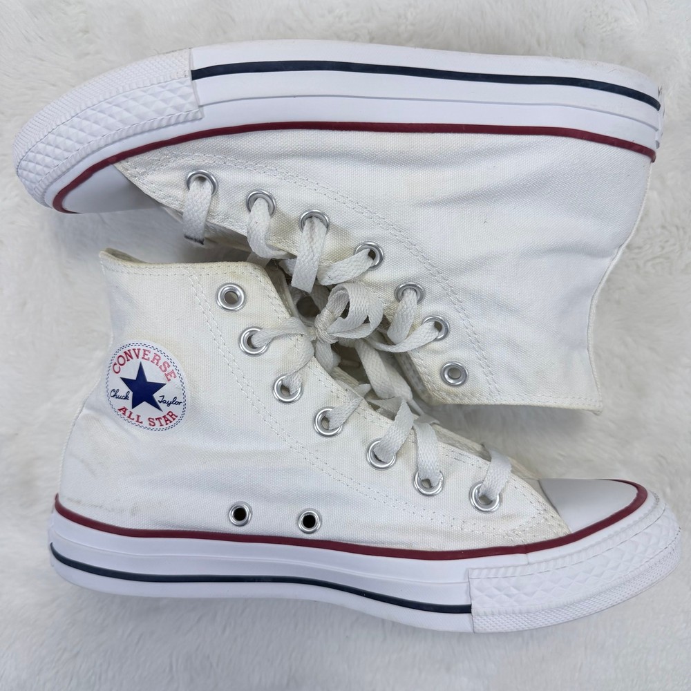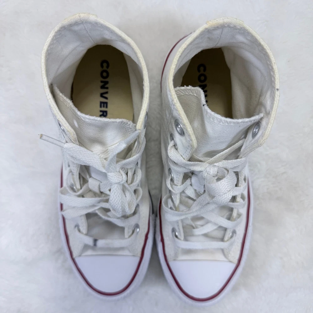 Converse Chuck Taylor All Star high top sneakers in classic Optical White, women’s US size 6. Timeless lace-up canvas sneakers featuring the iconic Chuck Taylor ankle patch and durable rubber sole — ideal for casual daily wear, street style, or classic wardrobe staples. These shoes are Pre-Owned and show normal signs of wear consistent with prior use (such as light creasing, minor scuffs, or outsole wear). Please review all photos carefully to assess condition and details before purchasing. Returns: Returns accepted. If a return is requested due to change of mind, fit, or any reason not related to an item being not as described or seller error, the buyer is responsible for return shipping. Original shipping costs are non-refundable.