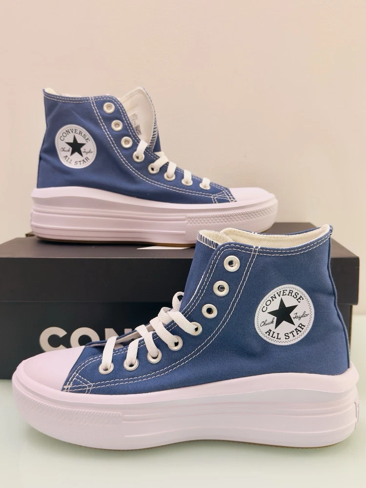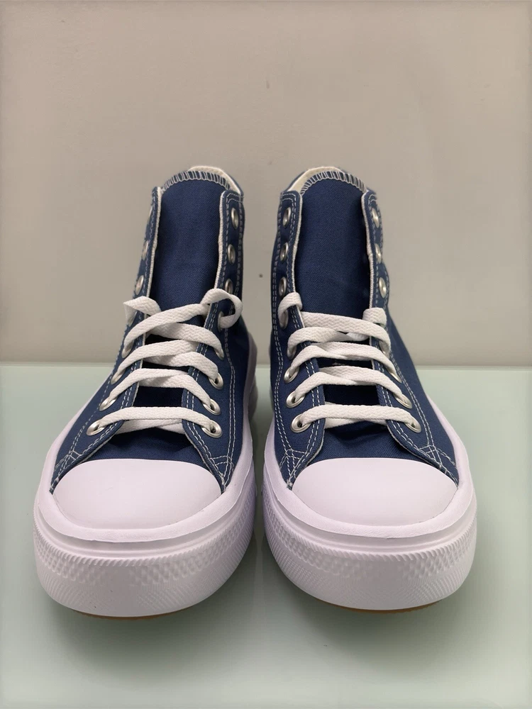Elevate your sneaker game with these stylish Converse Chuck Taylor All Star Move Platform High Armor Blue Jean W sneakers. The high top shoe shaft style and drawstring closure make them perfect for any occasion, whether it's casual wear, activewear, or workwear. The versatile blue jeans and hip hop-inspired design make them a must-have for any fashion-forward woman's wardrobe. These sneakers are made with breathable canvas upper material and comfortable fabric insole material, ensuring they are lightweight and perfect for all seasons. With a rubber outsole and cushioned features, they are ideal for gym and training, walking, weightlifting, school, beach, dance, driving, skateboarding, yoga, fishing, cheerleading, running, and jogging. Get ready to make a statement with these Converse Chuck Taylor All Star Move Platform High Armor Blue Jean W sneakers! Thank you for looking! We appreciate you taking the time to view our listing. If you decide to make a purchase, we kindly ask that you leave positive feedback. Your satisfaction is our priority, and your feedback helps us continue to provide excellent service. If you have any questions or concerns, please feel free to reach out. We’re here to help! Thank you for your support!