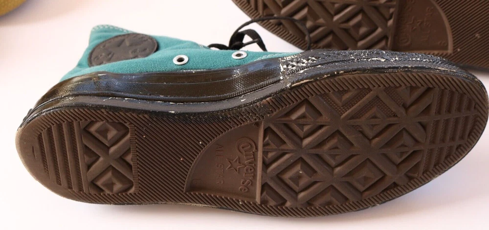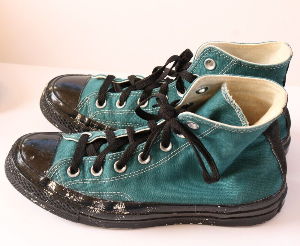 Slip into a timeless classic with these Converse Chuck Taylor All Star High Top sneakers in a vibrant green hue. These iconic shoes, designed for both men and women, offer a stylish high-top shaft for ankle support and feature the distinctive Converse branding that's synonymous with quality and casual flair. The size 6 US (UK 6, EU 39) sneakers are a perfect blend of fashion and comfort, boasting a roomy shoe width ' W' that accommodates a range of foot sizes. Whether you're hitting the streets or just enjoying a casual day out, these sneakers will add a touch of effortless style to your ensemble.