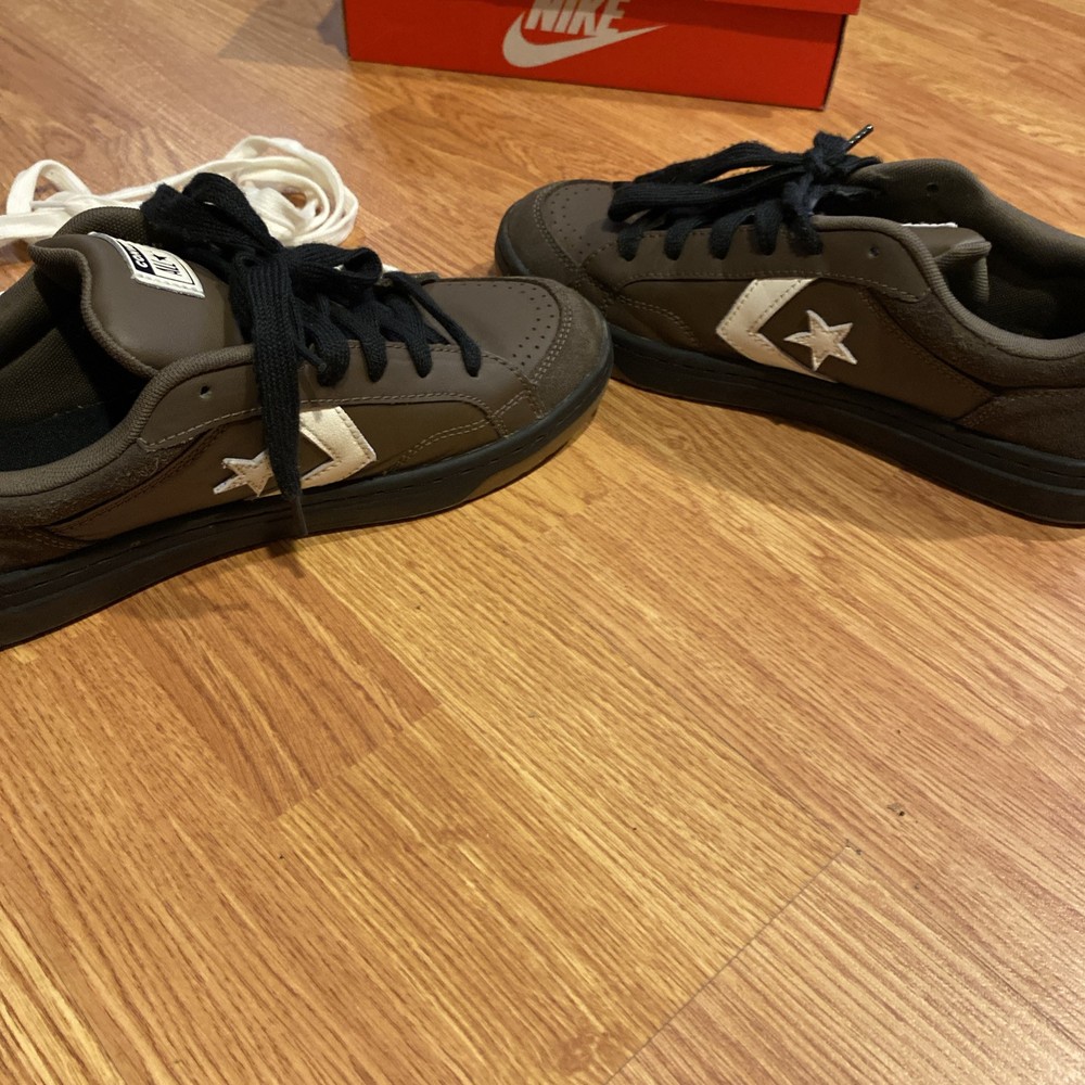These Converse Shoes are pre-owned and designed for men in a size 9. They are brown sneakers with a classic athletic style, perfect for casual or sporty outfits. The Converse brand is known for its durable and comfortable footwear, making these shoes a reliable choice for everyday wear.