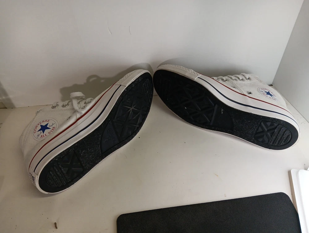 Elevate your casual wear with these white Converse Chuck Taylor All Star sneakers. Designed with a lace-up closure and low-top shoe shaft style, these sneakers are perfect for any occasion, whether it be activewear or casual outings. The canvas fabric type and breathable features make them ideal for summer, spring, and fall seasons. These unisex sneakers come in size 6.5 US and 4 UK, with a standard shoe width. The rubber outsole material and cushioned insole provide comfort and support for activities such as walking, weightlifting, school, and skateboarding. The Converse Chuck Taylor All Star product line and star theme add a touch of uniqueness to these classic sneakers.