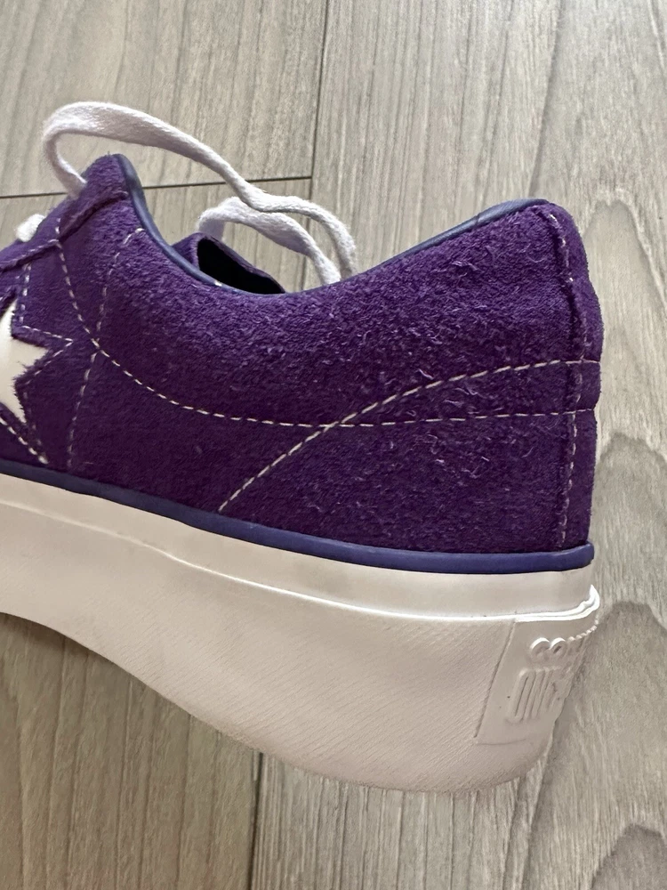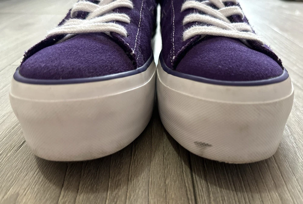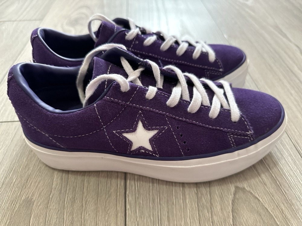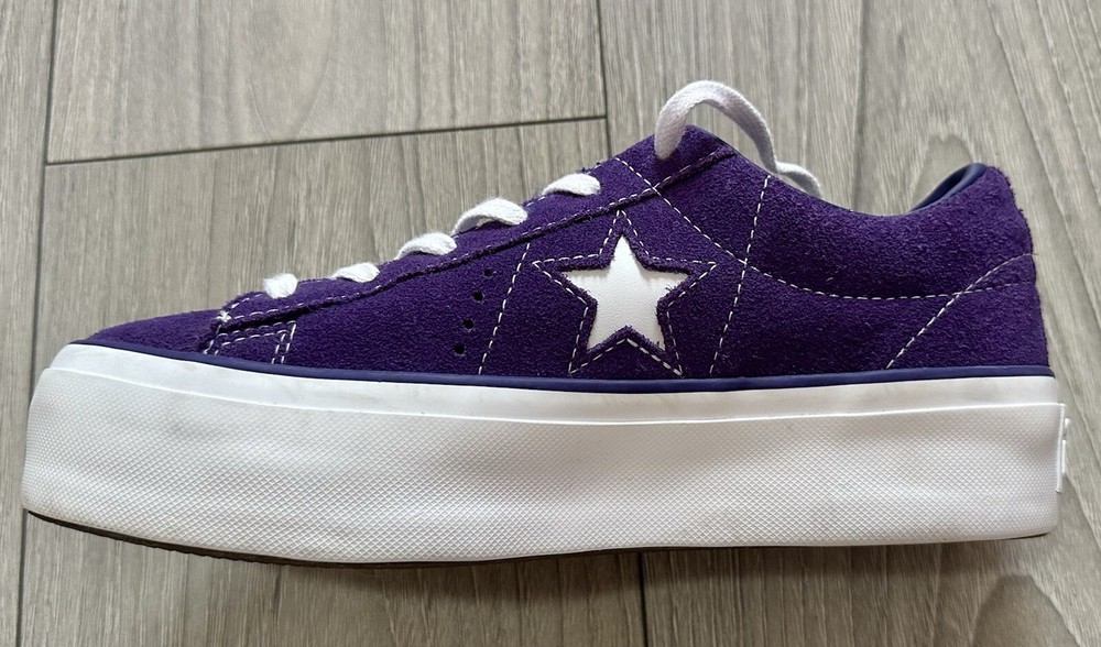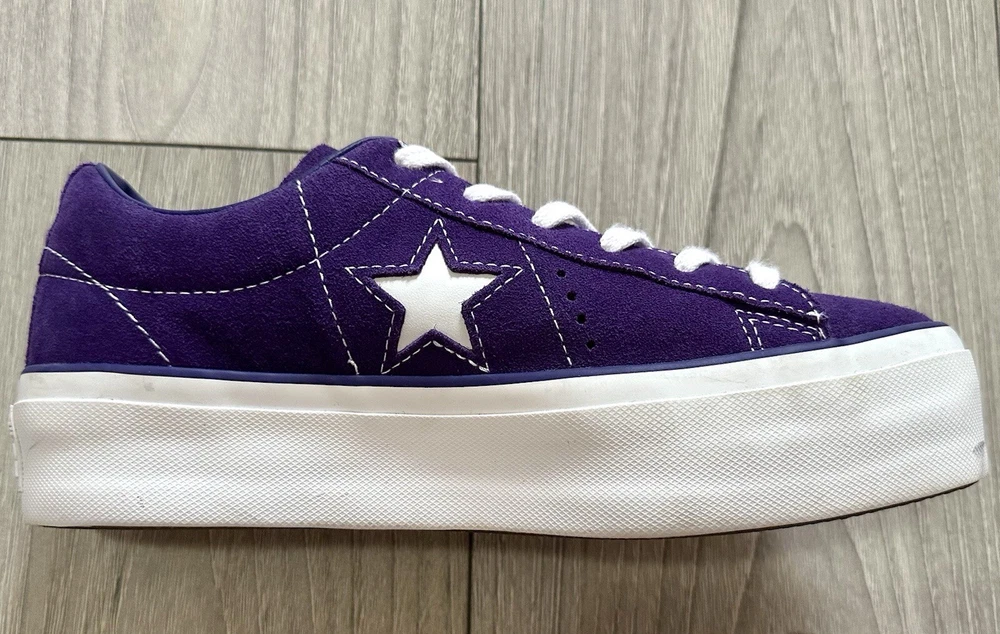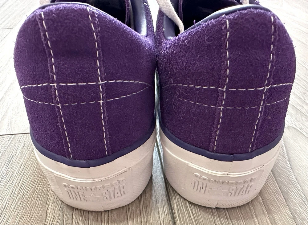 Converse Women's Platform One Star Purple Suede Sneakers US Size 7 Unique and fun color! Worn only a few times. Outside is suede, and inside of collar lining is leather. Pre-Owned: Marks on outsoles & slightly worn suede/collar lining from normal wear - Please review photos carefully.