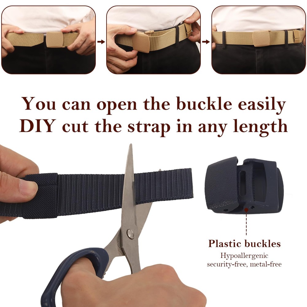 Description Description: Our Nylon Military Tactical Men Belt is more than just a belt. It's a dependable accessory built for the rigors of any environment. Whether you’re securing gear or simply need a reliable belt that keeps up with your active lifestyle, this belt is designed to meet your needs. Product Function Detailed Explanation: This tactical belt features a heavy-duty nylon strap, making it not only durable but also resistant to wear and tear. The quick-release plastic buckle allows for easy, one-handed operation—essential when quick changes are needed. It’s designed to be adjustable, fitting up to a 53.1" waist without sacrificing comfort. The versatility of this belt makes it perfect for both daily wear and specialized needs like hiking, military deployment, or outdoor work. The pack includes 3 belts, each with a robust webbing that holds up against the elements. This means no stretching, slipping, or breaking, even under strain. Its adjustable nature ensures it can be tailored to your specific fit, providing comfort and support without restricting movement. Specifications and Usage Instructions: Material: High-strength nylon Buckle: Plastic, quick-release Size: Adjustable up to 53.1 inches in length,and 1.5 Inches in width Color: Assorted for versatile use Pack: 3 Belts,1 replace buckle Usage is straightforward: slide the belt through your pants loops, adjust to fit, and secure with the buckle. The belts can be easily cleaned with a damp cloth and are quick to dry, making maintenance simple and efficient. Additional Information: Our Nylon Military Tactical Men Belt is perfect for those who value durability and functionality. However, it's important to note that while the buckle is sturdy and reliable, it should not be used as a climbing or life-saving device. Regular checks for wear and tear are recommended to ensure maximum safety and longevity. With our military belt, you're not just buying a belt; you're investing in a tool that will serve you reliably in any scenario. Equip yourself with the right gear, and never worry about your kit’s durability again. Lengthening Tactical Belt Military Belt- The nylon military tactical men belt is specially designed in 53.1'',perfectly fits up to a 45" waist below. The easily adjustable buckle ensures a snug fit for daily comfort and tactical utility. Designed for active duty or daily wear, our belt supports rigorous outdoor and military use Durable Nylon Material- Made from high-strength nylon, this belt is designed to withstand the toughest conditions. Ideal for military personnel and outdoor enthusiasts, it promises longevity and resilience, making it a practical choice for your adventures Quick-Release Plastic Buckle- Our belts feature a sturdy, quick-release buckle for fast and easy removal. This feature is especially useful in emergency situations or when transitioning between work and leisure, enhancing your preparedness and efficiency.Also get one free plastic buckle for changing Versatile Style & Use- These tactical belts seamlessly blend functionality with style, making them suitable for military, outdoor, and casual wear. They are the perfect accessory for any outfit, enhancing both your wardrobe and readiness for any situation Pack of 3 Value- Receive three heavy-duty tactical belts at an unbeatable price, ensuring you always have a reliable belt ready. Whether you're hiking, working, or simply going about your day, these belts provide exceptional value and versatility. No Hold & Non-Metallic- The tactical belt military belt nylon belt webbing belt is non-metallic buckle for easy/quick clearance at security checkpoints. Especially suitable for metal allergy to wear. Removable plastic buckles, not easy to crack and breakage