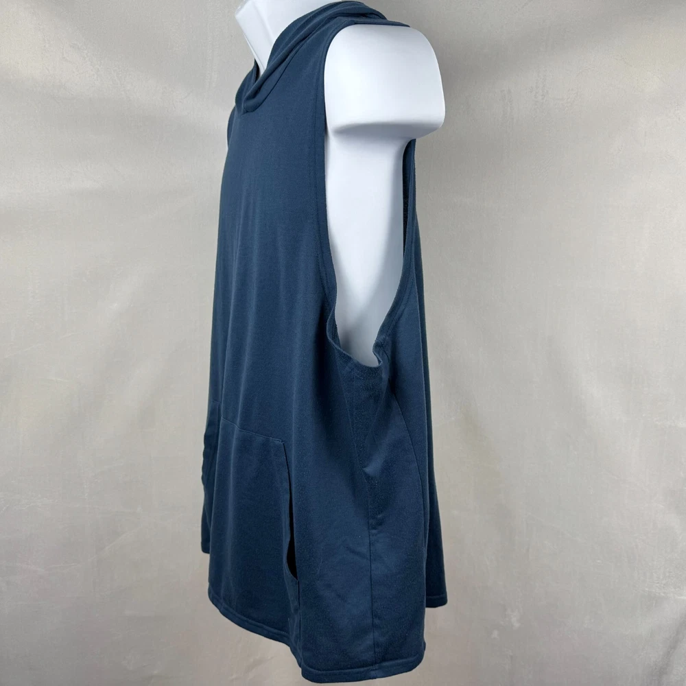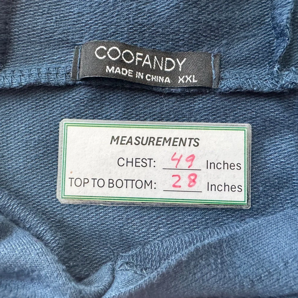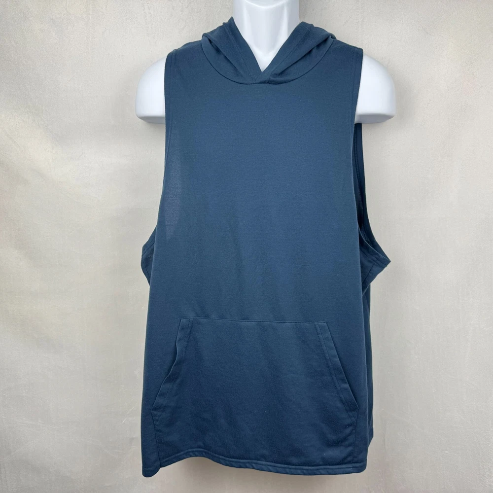 This Coofandy men's hooded tank top is perfect for any athletic activity. The top is made of a combination of spandex and cotton, ensuring a comfortable and snug fit. The solid blue color and sleeveless design make it a versatile addition to any wardrobe. The tank top is available in size 2XL and is suitable for big and tall men. It features a hood for added warmth and protection during colder seasons. The garment care instructions recommend hand wash only. This item is perfect for those who enjoy bodybuilding or any other athletic activity. Measurements, Materials and Item Care: See labels photos. Item has been washed/cleaned and it is already packed, I will ship the same day or next business day. Color might differ from picture due to flashlight used , also it depends on your monitor light settings. Open to offers. B-1774