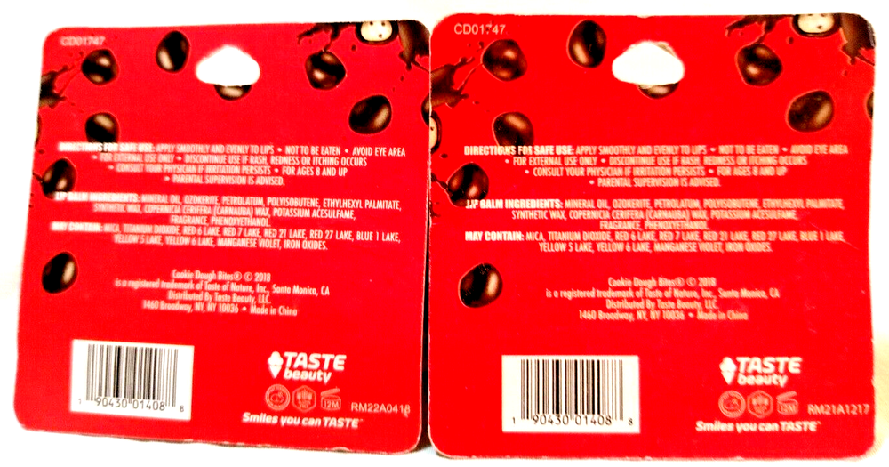 I absolutely love these Cookie Dough Bites lip balms! They smell amazing, just like real cookie dough, and keep my lips super soft. The packaging arrived in great condition, and having two is perfect—one for my purse and one for home. Super hydrating with a subtle sweet flavor. Definitely a must-have for lip balm lovers!