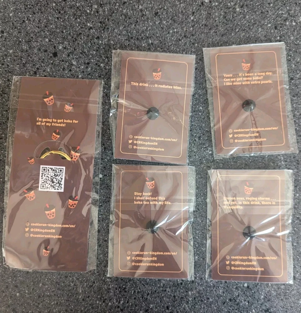 This limited time exclusive pins and keychain set is a must-have for Cookie Run Kingdom fans. Featuring the iconic characters from the popular game, this set includes pins and a keychain that are perfect for collectors and players alike. The Brand, Cookie Run Kingdom, is known for its unique and engaging gameplay that has captured the hearts of many gamers. Set Includes: Ginger brave & sugar gnome keychain, Milky Way cookie pin, pure vanilla cookie pin, sea fairy cookie pin, and caramel arrow cookie. Pictures shown as is. Please feel free to message me with any questions!