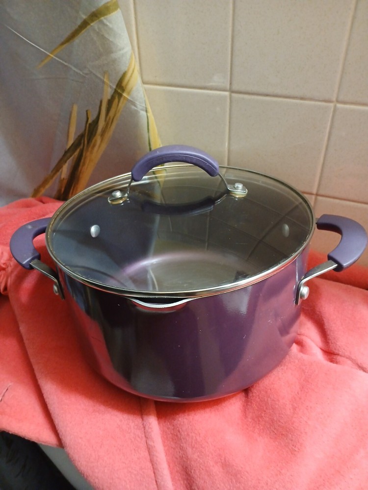 This Cook's Essentials 6 qt pot is a must-have addition to your kitchen. The purple enamel finish adds a pop of color to your cookware collection, while the non-stick surface makes cooking and cleanup a breeze. The pot comes with a lid and is dishwasher safe for easy cleaning. Made of high-quality aluminum, this pot is perfect for all your cooking needs. Whether you're boiling, steaming, or sautéing, this pot will get the job done. The Cook's Essentials brand is known for its quality products, and this pot is no exception. Add it to your cart today and take your cooking to the next level.