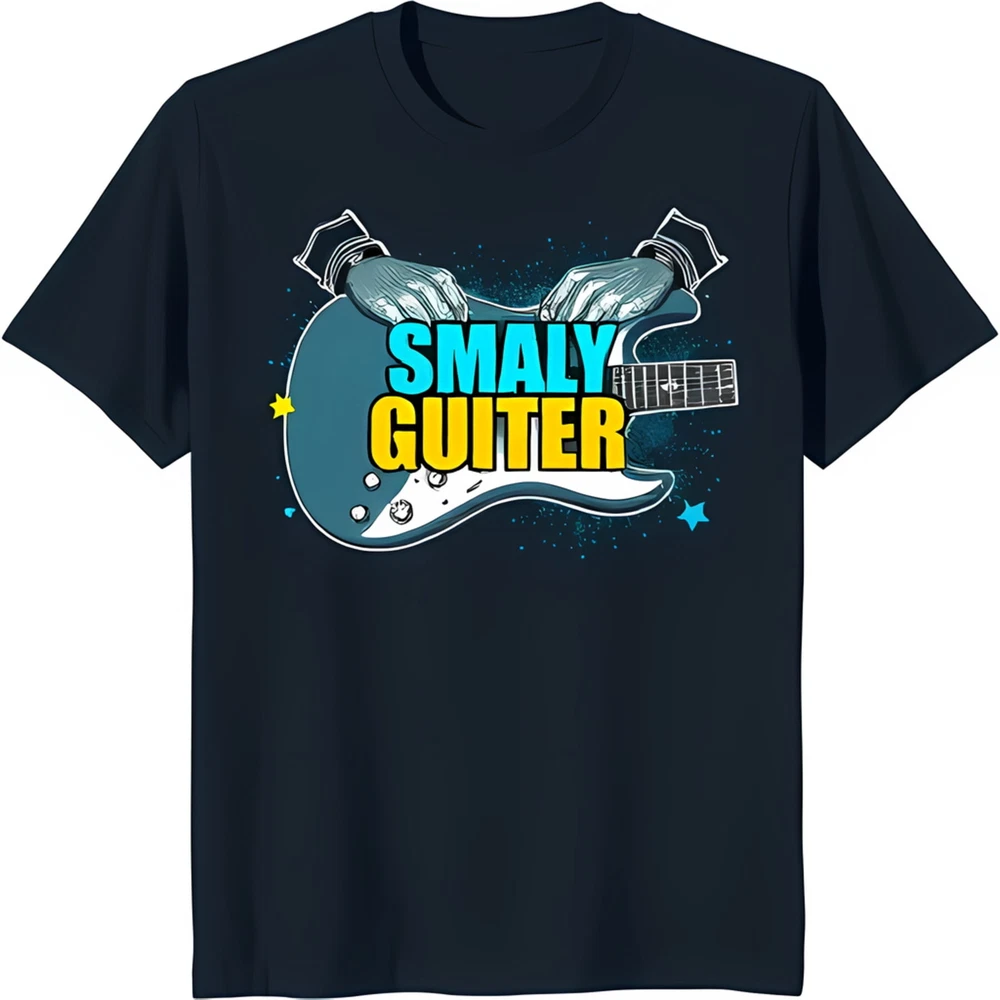 Cool Black T-Shirt with Cartoon Graphic & Hands 'SMALY GUITER' Design