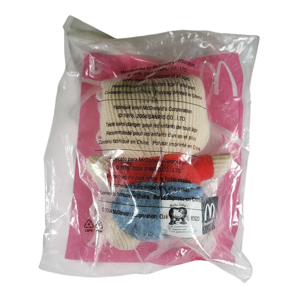 Cool Kitty 2004 McDonalds Sanrio Hello Kitty 30th Anniversary Plush Toy #6 was manufactured for McDonald's Corporation as one of their featured toys with the purchase of a child's happy meal. "Cool Kitty" has never been out of the packaging. Package is in very good condition with tears. Measurements: Approximately 4" tall