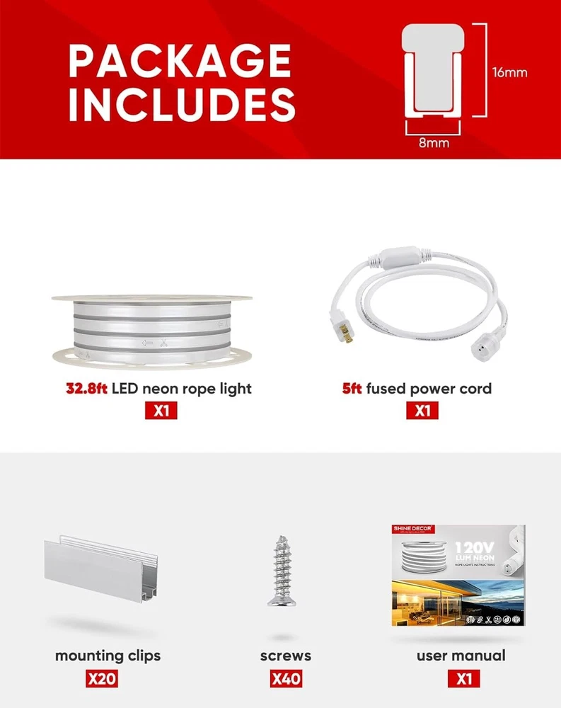 Cool White 32.8FT Neon LED Strip Light - Flexible & Cuttable for Décor ‹ › ‹ › ‹ › ‹ › ‹ › ‹ › ‹ › ‹ › ‹ › ‹ › Cool White 32.8FT Neon LED Strip Light Enhance your space with this Flexible & Cuttable Neon LED Strip Light designed for décor enthusiasts! Features: Continuous Bright Lighting: Each meter features 120 pcs of SMD 2835 LED beads providing a high brightness of 226 lm/m (2500k warm white) or 241 lm/m (6300k cool white). Uniform Soft Glow: PVC-covered LEDs deliver a bright and uniform light without dark dots. ETL Safe & Long Lifespan: Updated to ETL-listed quality with a spare fuse in the power plug for enhanced safety. Expect over 50,000 hours of life. Connectable & Cuttable: Flexible design is end-to-end connectable (max. 164 ft) and cuttable every 1.64 ft for creative customization. IP65 Splashproof: Suitable for both indoor and outdoor uses. Stands resiliently from 32 ℉ to 104 ℉ (0 ℃ to 40 ℃). Benefits: Perfect for various occasions – create stunning visuals for parties, events, or personal spaces. Flexible design allows for unique shapes and patterns, turning any area into a vibrant display. Low power consumption at 6.5 W/M makes it energy-efficient. Comes with aluminum mounting clips for easy installation; additional clips and accessories available separately. Why choose our Cool White Neon LED Strip Light? Transform your living space with the mesmerizing glow of our Cool White Neon LED Strip Light. With flexible versatility and endless design possibilities, it's time to let your creativity shine. Its durability, energy efficiency, and safety features promise long-lasting enjoyment for all your decorative needs, both indoors and out. Don't settle for ordinary lighting when you can elevate your décor – illuminate your life with our Neon LED Strip Light today! Shipping Free & Fast Shipping - We offer free shipping to most of the USA with a normal delivery time of 3-7 days. However, due to the current situation, additional delivery time (up to 3 weeks) may be required for some items. Alternative Carriers - We may use alternative carriers (e.g. USPS, FedEx, UPS, etc.) to ensure your package arrives safely and on time. Due to the use of multiple carriers, we are unable to provide a tracking number automatically. Handling Time - Orders are processed and shipped within 1-2 business days of receiving cleared payment. Shipping Restrictions - Shipping to Alaska, Hawaii, Puerto Rico, Guam, and other US territories may incur shipping charges or delivery restrictions. Please contact us before ordering, or your order can be refunded/cancelled. State Restrictions - There may be restrictions based on your state of purchase. For example, certain items may not be shipped to California due to state regulations. Contact for Tracking Updates - If you require tracking updates or have any concerns about the delivery of your order, please feel free to contact us, and we will be happy to assist you. Return 30-Day Hassle-Free Returns - We want you to be completely satisfied with your purchase. If you are not, you can return the item within 30 days of receiving it for a full refund or exchange. Easy Return Process - To start a return, simply contact us and we will provide you with a prepaid return shipping label and detailed instructions. Restocking Fee - There are no restocking fees for returns. However, the buyer is responsible for return shipping costs if the return is not due to a seller's error. Refund Processing Time - Refunds will be processed within 5 business days of receiving the returned item in its original condition. Payment We accept all major credit cards, PayPal, and Apple Pay for your convenience. Your payment information is secure and encrypted to ensure a safe and seamless transaction. Please complete your payment within 3 days of purchase to avoid any delays in shipping. Feedback Your feedback is extremely important to us. We strive to provide the best products and customer service possible. If you are satisfied with your purchase, please take a moment to leave us a positive review. If you have any concerns or issues with your order, please contact us before leaving negative feedback. We are committed to resolving any problems and ensuring your satisfaction. Contact Us If you have any questions or concerns, please feel free to reach out to our customer support team. You can contact us through the eBay messaging system. We are available Monday to Friday, 9:00 am to 5:00 pm EST, and we will do our best to respond to your inquiry within 24 hours. Buy it now and enjoy a pleasant shopping experience! UPC: Not Set Size: 10m/32.8ft Item Height: Not Set Lumens: 241 lm/m Power Consumption: 6.5 W/M Unit Quantity: 1 Occasion: Christmas Features: Dimmable,Flexible,Cuttable,End-to-End Connectable,IP65 Waterproof,Fused Power Plug Safe to Use,High Brightness Light Color: 6300k white Control Style: Remote Control Department: Unisex Baby & Toddler,Kids,Teens,Adults Theme: Outdoor Room: Outdoor,Indoor Material: Polyvinyl Chloride Character: Not Set Labels & Certifications: Not Set Brand: Unbranded Type: Rope/Wire Lighting Technology: LED Light Shape: Strip Sensor Type: None Installation Area: Indoor & Outdoor Color: 6300k white Cord Color: White Power Source: Corded Electric Number of Settings: 1 LED String/Strip Type: SMD2835 Energy Star: Not Set MPN: Not Set EC Range: Not Set LED Chip Code: 2835 Voltage: 110 V Output Voltage: Not Set IP Rating: IP65 Character Family: Not Set Manufacturer: Not Set Amperage: Not Set Number of Lights: 1200 Country/Region of Manufacture: Not Set Style: Modern Color Temperature: 6300K Bulb Life Hours: 50 Model: Not Set Unit Type: Unit