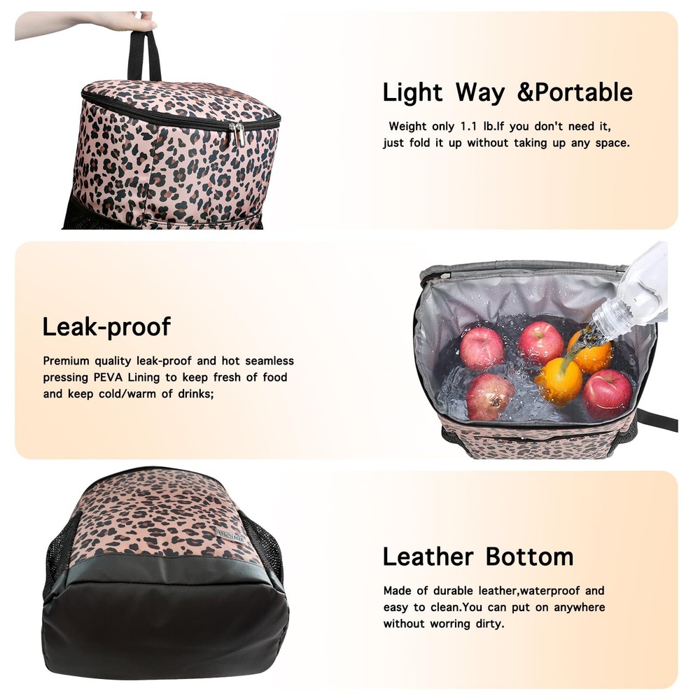 1 Fashion Style: With unique patterns and durable materials, this stylish cooler makes you stand out in crowds,brings you more pleasures in trip Roomy Space:The back pack cool has two side pockets, one zipper pocket, and a15L capacity main pocket ,can easily hold up to 30 cans(330ml) of drinks and travel essentials Leak-proof Material: Made of waterproof polyester material and seamless hot pressing PEVA lining,the cooler bag is leak-proof and easy to clean, very suitable for beach or boating Insulated Backpack:Thickened insulation EPE foam and leak-proof liner keep the food fresh and keep the beverage cold/warm for a long time Widely Used:With the function of waterproof,leakfoop and easy clean,the soft cooler is suitable for many application: bringing your lunch to work, a trip to the lake or beach,a daily city walk,camping,watching game,boating,picnic,road trip,etc.,Whatever the case, it's always good to have a backpack cooler on hand