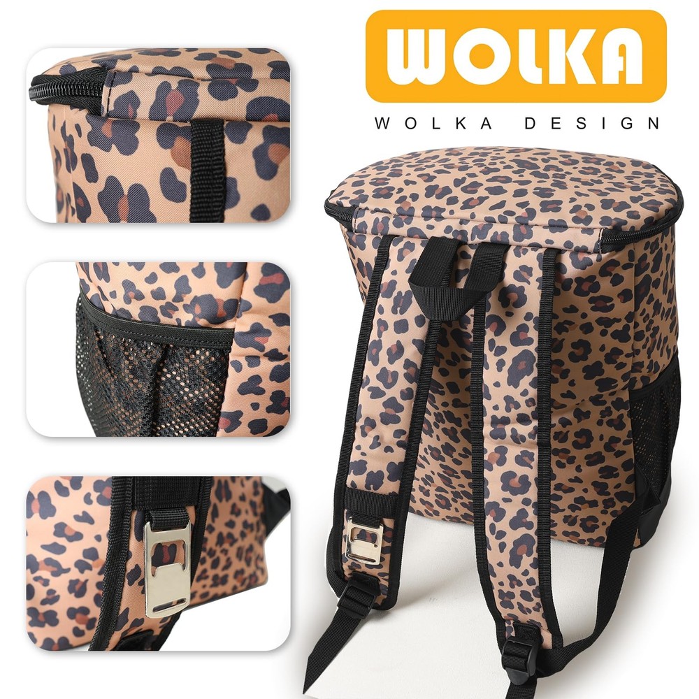 Team Name: Wolka Package Dimensions LxWxH: 16.5x7.44x2.48 Inches Brand: Wolka Capacity: 10.65 Color: Brown Leopard Included Components: Bottle Opener UPC: 782912497979 Model Number: Wcb-Cl Container Type: Bag Import Designation: Imported Item Shape: Rectangular Weight: 1.1 Pounds Type: Does not apply Model Name: Cooler Material: Polyester EAN: 0782912497979 Pattern: Solid gtin13: 0782912497979 ISBN: 0782912497979