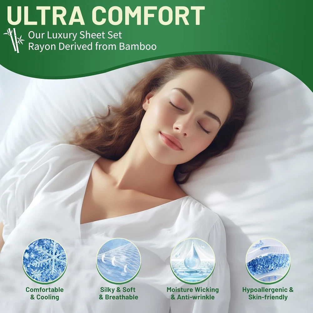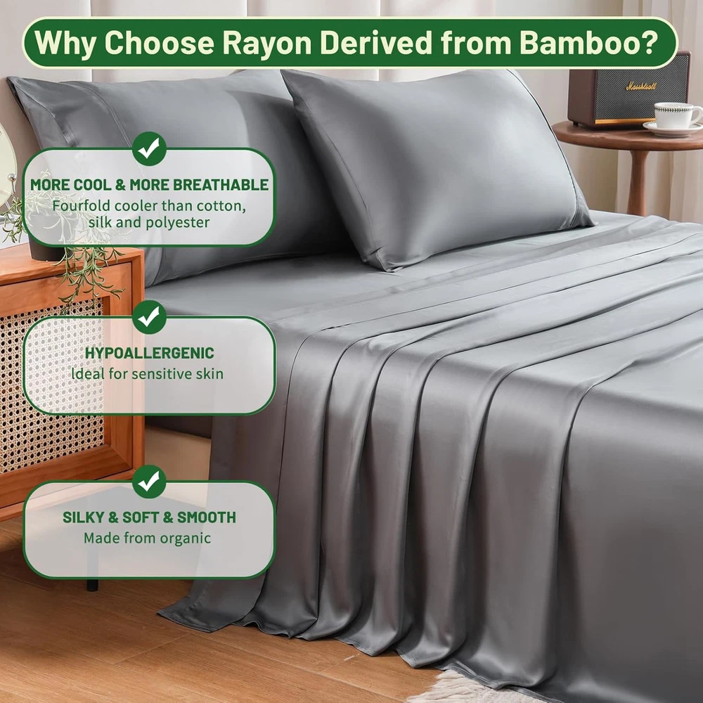Fast Shipping Great Customer Support Satisfaction Guaranteed DESCRIPTION Shipping Shipping Shipping All domestic packages are shipped for Free (Unless other shipping method was selected during the checkout) Most items ship and arrive much sooner than the estimate delivery date. Usually within 2-3 days from payment. However, we have longer estimates to compensate for the occasional delay or supply chain breakdown. We do not accept P.O. BOXES - PLEASE PROVIDE A PHYSICAL ADDRESS Return Return Return In the event that you would like to return your purchase, we allow returns that are processed within the defined return date (the return date is to be found in the return policy/shipping and handling section) Please contact us for a return authorization and the return shipping address. Payment Payment Payment PayPal is our preferred method of payments it's the quickest, easiest and most secure way to pay for your goods or services online. PayPal offers buyer and seller protection should there be a problem. If you do not have a PayPal account, to get started and buy your first item with us is very easy. Simply click on the 'Buy It Now' button and follow the eBay checkout steps. Select PayPal as the payment method you then will be given the chance to enter your card details in to PayPal's secure checkout in order to pay for your order. Once the payment has been made, you will then be given the opportunity to make your own PayPal account to make paying for your items in the future very easy. Should there be a problem with payment please do let us know. Feedback Feedback Feedback Customer satisfaction is very important to us. If you have any problem with your order,please contact us and we will do our best to make you satisfied, please do not leave a negative feedback before we resolve your problem. We guarantee that your issue will be solved quickly. As long as you are happy with your purchase of , please leave us a positive feedback. Your feedback is very important to us it affects our search placement on eBay. We will leave a positive feedback for you in return automatically once we receive your feedback. Contact Us Contact Us Contact Us If you have any queries, please contact us via ebay. We usually respond within 24 hours on weekdays. Thank you for visiting our ebay store! Organic Sheets:Our sheet set is made from 100% organic Rayon Derived from Bamboo, ensuring a soft and breathable sleep experience that's safe for your skin and free of harmful chemicals, hypoallergenic and moisture-wicking, making it perfect for those with allergies or sensitive skin. All-season comfort: Our cooling sheets set offer a balance of breathability and warmth that make them ideal for year-round use. They'll keep you cool in the summer and warm in the winter.The fitted sheet has deep pockets that can accommodate mattresses up to 16 inches in height, ensuring a snug fit that stays in place all night long. Luxury 4 Pieces Queen Sheet Set:Cooling Sheets queen size bed set include 1 Flat Sheet 90"×102", 1 Fitted Sheet 60"×80" and 2 Pillowcases 20"×30".Luxury Rayon Derived from Bamboo 400 thread count sateen weave for good durability.1 inch 12 stitches, tight sewing process to reduce damage and tear.They’re also shrink and fade resistant. Easy care: Cooling sheets are machine-washable and dryable, making them a breeze to clean and maintain. Plus, they resist wrinkles and shrinkage for lasting durability.Wash on a gentle laundry cycle,and tumble dry low.Remove immediately after washing and iron at low temperature. Service:If you have any questions, please feel free to contact us.We will solve your problem quickly. Enjoy the silky experience. Cooling Bamboo Bed Sheets Queen Set 400TC Ultra Soft Light Grey 4 Pieces Click here to see description Fast Shipping Great Customer Support Satisfaction Guaranteed DESCRIPTION Shipping All domestic packages are shipped for Free (Unless other shipping method was selected during the checkout) We ship within two business days of payment, usually sooner Standard FREE shipping takes between 3-5 business days Expedited shipping takes between 2-3 business days Overnight shipping takes between 1-2 business days We do not accept P.O. BOXES - PLEASE PROVIDE A PHYSICAL ADDRESS We Ship Globally using ebay's GSP, the item is sent to a logistic center in KY and shipped from there to the rest of the world. International customers are responsible for all duties and taxes Contact your local authority for questions related to the amount of duties or taxes you will be responsible for Return In the event that you would like to return your purchase, we allow returns that are processed within the defined return date (the return date is to be found in the return policy/shipping and handling section) Please contact us for a return authorization and the return shipping address. Please contact us for a Return Merchandise Authorization (RMA) number. We advise you to use a reputable carrier service when returning your goods. Please pack all returns appropriately. We ship globally Via eBay's global shipping program (GSP). Thus we don't cover returns for items shipped globally. Buyers returning such items will be refunded ONLY for the item's cost and not for the shipping. please check the Voltage information and make sure it matches the one in your country. In case it's not stated in the description, do ask us. Payment PayPal is our preferred method of payments it's the quickest, easiest and most secure way to pay for your goods or services online. PayPal offers buyer and seller protection should there be a problem. If you do not have a PayPal account, to get started and buy your first item with us is very easy. Simply click on the 'Buy It Now' button and follow the eBay checkout steps. Select PayPal as the payment method you then will be given the chance to enter your card details in to PayPal's secure checkout in order to pay for your order. Once the payment has been made, you will then be given the opportu
