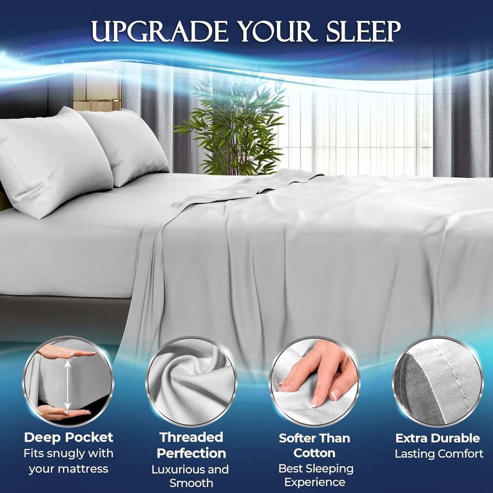 Cooling Bed Sheets King Set 4pcs Microfiber Bamboo Viscose Breathable ‹ › ‹ › ‹ › ‹ › ‹ › ‹ › ‹ › ‹ › Cooling Bed Sheets King Set - 4pcs Microfiber Bamboo Viscose Unwind in pure luxury - indulge in unrivaled comfort with our king sheets cooling set. With enhanced BreezeWeave Blend technology, our Bamboo Viscose Microfiber sheets offer you the perfect sleeping experience. Elevate your sleep to a whole new level of serenity and relaxation. Features: King size set includes 4 essential pieces for your ultimate comfort. Enhanced BreezeWeave technology for a breathable, smooth texture. Wicks away moisture to keep you cool throughout the night. Durable fabric that resists pilling and wrinkles for effortless elegance. Deep pocket design to accommodate extra-thick mattresses and pillow tops. Benefits: Stay cool all night long, perfect for hot sleepers. Experience reduced friction for enhanced sleep quality. Effortless care with easy washability to save you time. Crafted to fit standard mattress dimensions, ensuring a snug and secure fit. Wake up refreshed and ready to conquer the day with our cooling sheets. Why Choose Our Cooling Bed Sheets? Looking to improve the quality of your sleep? Sleep is often disrupted by the linens we choose, and our cooling bed sheets are here to change that. Made from silky-smooth fabric, they offer a luxurious experience designed to keep you comfortable and cool, no matter the season. With this king sheet set, indulge in lasting comfort that not only elevates your bedding aesthetic but also transforms your sleep quality. Say goodbye to tossing and turning and hello to a refreshing night's sleep. Order now to embrace the luxury of cool comfort! Shipping Free & Fast Shipping - We offer free shipping to most of the USA with a normal delivery time of 3-7 days. However, due to the current situation, additional delivery time (up to 3 weeks) may be required for some items. Alternative Carriers - We may use alternative carriers (e.g. USPS, FedEx, UPS, etc.) to ensure your package arrives safely and on time. Due to the use of multiple carriers, we are unable to provide a tracking number automatically. Handling Time - Orders are processed and shipped within 1-2 business days of receiving cleared payment. Shipping Restrictions - Shipping to Alaska, Hawaii, Puerto Rico, Guam, and other US territories may incur shipping charges or delivery restrictions. Please contact us before ordering, or your order can be refunded/cancelled. State Restrictions - There may be restrictions based on your state of purchase. For example, certain items may not be shipped to California due to state regulations. Contact for Tracking Updates - If you require tracking updates or have any concerns about the delivery of your order, please feel free to contact us, and we will be happy to assist you. Return 30-Day Hassle-Free Returns - We want you to be completely satisfied with your purchase. If you are not, you can return the item within 30 days of receiving it for a full refund or exchange. Easy Return Process - To start a return, simply contact us and we will provide you with a prepaid return shipping label and detailed instructions. Restocking Fee - There are no restocking fees for returns. However, the buyer is responsible for return shipping costs if the return is not due to a seller's error. Refund Processing Time - Refunds will be processed within 5 business days of receiving the returned item in its condition. Payment We accept all major credit cards, PayPal, and Apple Pay for your convenience. Your payment information is secure and encrypted to ensure a safe and seamless transaction. Please complete your payment within 3 days of purchase to avoid any delays in shipping. Feedback Your feedback is extremely important to us. We strive to provide the best products and customer service possible. If you are satisfied with your purchase, please take a moment to leave us a positive review. If you have any concerns or issues with your order, please contact us before leaving negative feedback. We are committed to resolving any problems and ensuring your satisfaction. Contact Us If you have any questions or concerns, please feel free to out to our customer support team. You can contact us through the eBay messaging system. We are available Monday to Friday, 9:00 am to 5:00 pm EST, and we will do our best to respond to your inquiry within 24 hours. Buy it now and enjoy a pleasant shopping experience! Unit Quantity: 1 set Material: Microfiber,Bamboo Viscose Microfiber,Bamboo Viscose Features: Breathable,Cooling,Wrinkle Resistant Care Instructions: Machine Wash Department: Adults Room: Bedroom Size: King Type: Sheet Set Color: White Pattern: Solid Thread Count: 200 or Less Style: Modern Shape: Rectangular GSM (Grams per Square Meter): Below 150 Unit Type: Unit