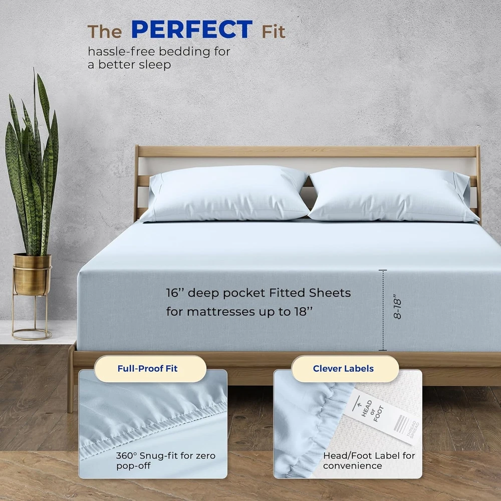Cooling Egyptian Cotton King Fitted Sheet with 16-Inch Deep Pockets - Light Blue