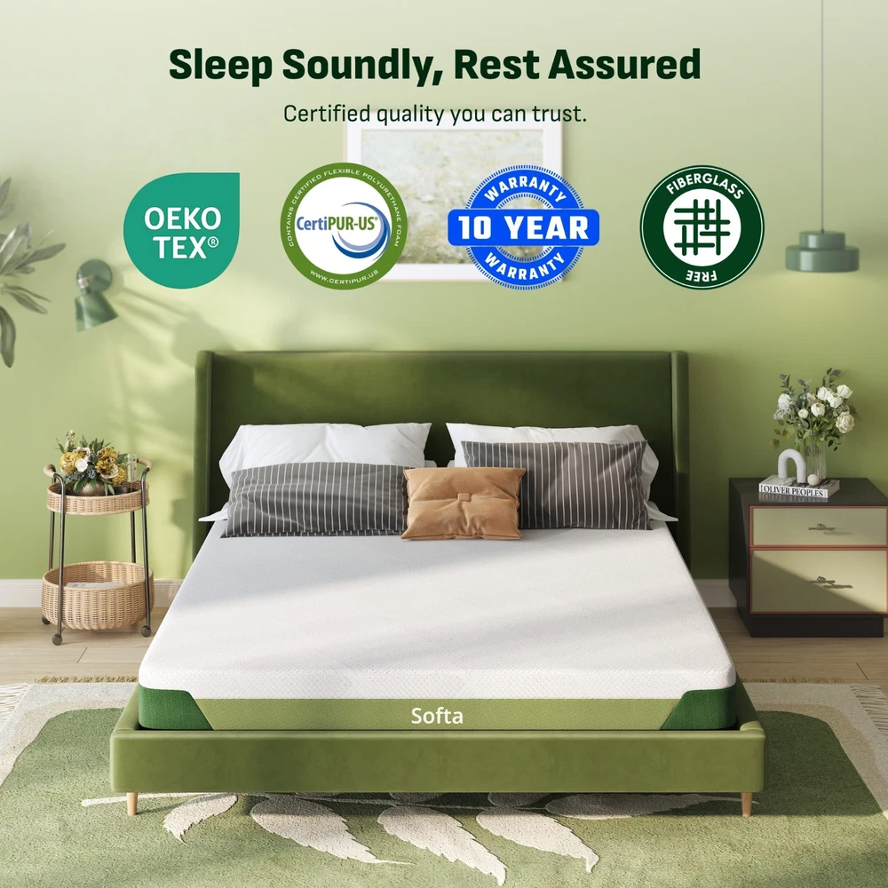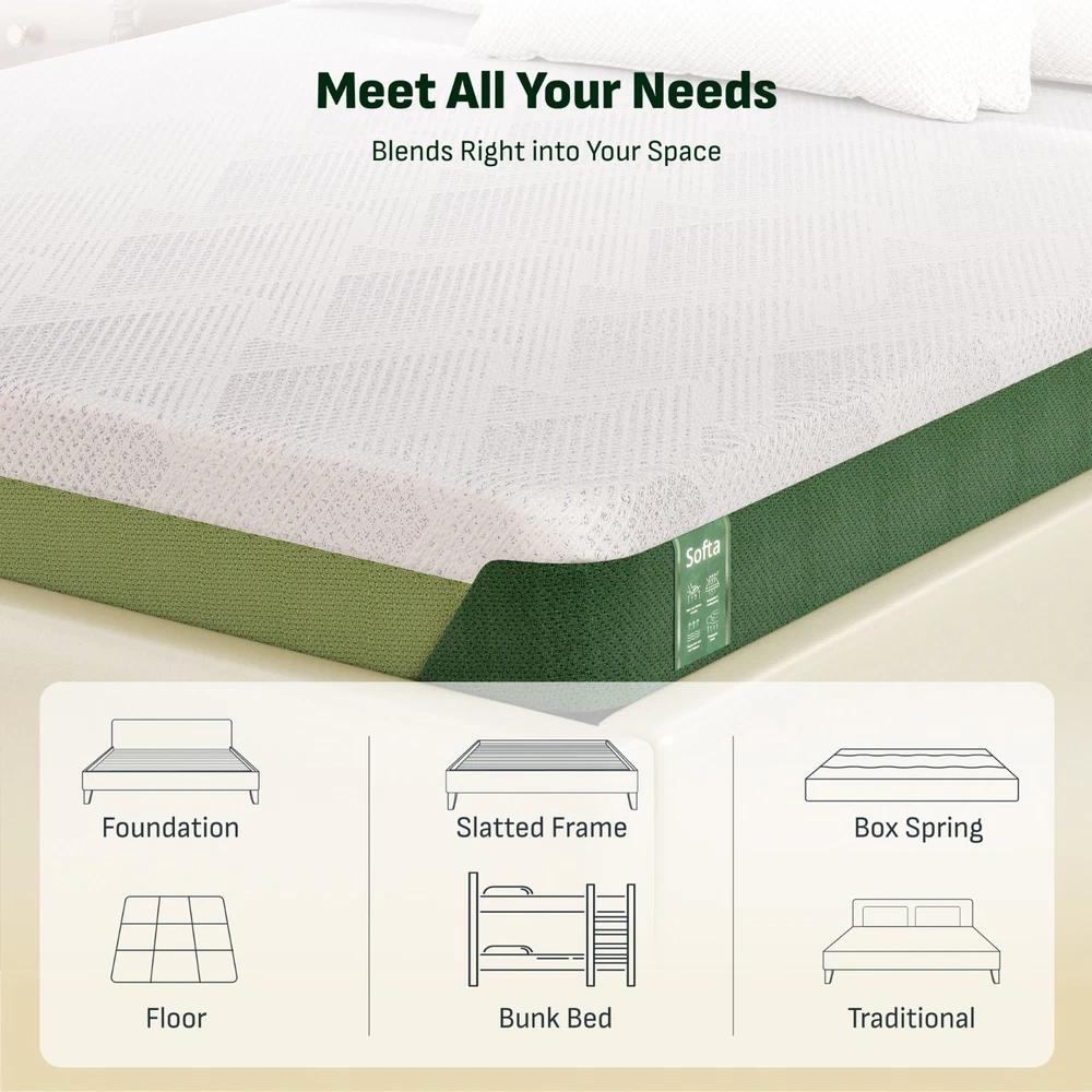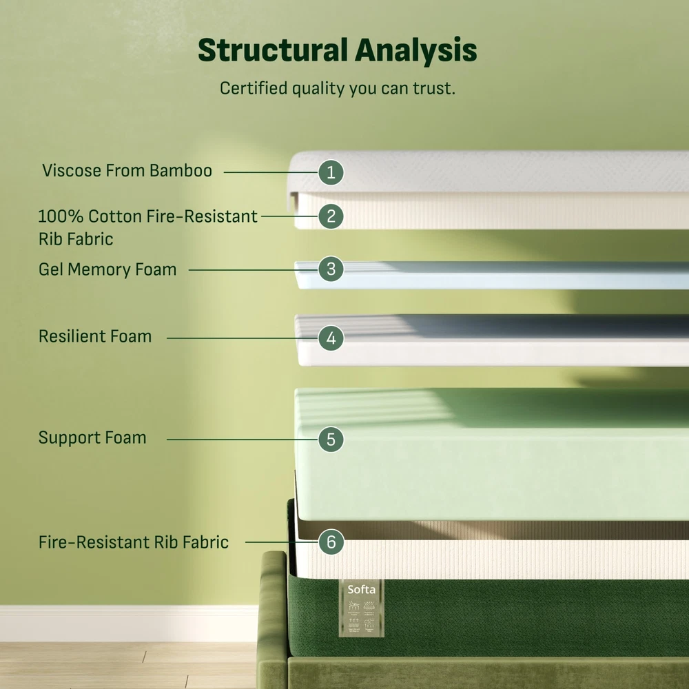 Home Payment Shipping Return Policy About Us Contact Us Feedback Title Other Standing Desk Desk Riser & Desk Converters Desk Bike Ergonomic Office Chair Fitness The Softa Cooling Gel Memory Foam Mattress delivers superior comfort with its breathable bamboo viscose cover that wicks moisture and resists odors for a cooler sleep. The gel-infused memory foam regulates temperature and relieves pressure points, while the green tea-infused base foam ensures lasting freshness and durable support. Its medium-firm design adapts to all sleeping positions, maintaining proper spinal alignment for back, side, and stomach sleepers. Certified by CertiPUR-US® and OEKO-TEX® for safety, it features a removable, washable cover and comes with a 10-year warranty. Conveniently packed in a box, it expands quickly and minimizes motion transfer, ensuring undisturbed rest night after night. 【Viscose From Bamboo】 Made with viscose from bamboo, this mattress offers silky softness, natural odor resistance, and excellent moisture-wicking performance—keeping your sleep environment cool, dry, and fresh every night. 【Gel Memory Foam for Cooling Comfort】 Experience soothing comfort all night long with our gel-infused memory foam. Designed with advanced cooling technology, it effectively regulates temperature, relieves pressure points, and supports your body for a deeper, more refreshing sleep. 【All Night Freshness】 The supportive base foam is infused with green tea extract to help maintain a fresh-feeling mattress and provide a stable, durable foundation for long-term comfort. 【Medium Firm Support for All Sleep Styles】 Our medium-firm memory foam mattress strikes the perfect balance between comfort and support. It gently contours to your body, relieves pressure points, and adapts to side, back, and stomach sleepers—making it a reliable choice for deep, uninterrupted rest. 【Certified Safety and Peace of Mind】 Designed with your well-being in mind, this mattress is made from high-quality, safety-tested materials and backed by a 10-year warranty. It meets CertiPUR-US and OEKO-TEX standards—so you can rest easy, knowing your sleep surface is both safe and reliable. 【Removable & Washable Cover】 The zippered outer cover is easy to remove and machine washable—keeping your mattress fresh and your sleep space clean with minimal effort. 【Undisturbed Rest All Night】 Whether your partner is tossing, turning, or getting up in the middle of the night, this mattress is designed to absorb motion and minimize disruptions. Enjoy peaceful sleep without the midnight wake-ups. 【Boxed and Ready to Go】 Arrives neatly rolled and packed in a box—just unbox, unroll, and let it fully expand. No tools, no hassle, just comfort in minutes. Specifications: Firmness: Medium Firm Material: Foam+Spring Thickness: 6 in/8 in/10 in/12 in 6" Overall dimension/Weight: Twin: 75''L x 38''W x 6''H / 19.68 lb Twin XL: 80''L x 38''W x 6''H / 20.8 lb Full: 75''L x 53''W x 6''H / 31.6 lb Queen: 80''L x 60''W x 6''H / 36.9 lb Split King: 80''L x 76''W x 6''H / 41.58 lb 8" Overall dimension/Weight: Twin: 75''L x 38''W x 8''H / 27.8 lb Twin XL: 80''L x 38''W x 8''H / 29.2 lb Full: 75''L x 53''W x 8''H / 38.2 lb Queen: 80''L x 60''W x 8''H / 44.75 lb Split King: 80''L x 76''W x 8''H / 58.43 lb 10" Overall dimension/Weight: Twin: 75''L x 38''W x 10''H / 33.6 lb Twin XL: 80''L x 38''W x 10''H / 38 lb Full: 75''L x 53''W x 10''H / 49.6 lb Queen: 80''L x 60''W x 10''H / 58.1 lb Split King: 80''L x 76''W x 10''H / 76 lb 12" Overall dimension/Weight: Twin: 75''L x 38''W x 12''H / 39.9 lb Twin XL: 80''L x 38''W x 12''H / 42.04 lb Full: 75''L x 53''W x 12''H / 54.7 lb Queen: 80''L x 60''W x 12''H / 64.1 lb Split King: 80''L x 76''W x 12''H / 84 lb About us Return Policy Warranty Info Shipped About us Our Mission Make healthy life easier. To introduce creative solution geared towards creating better working environments that promote efficiency, productivity, and wellbeing. The goal is to help our clients achieve new heights of wellness and strike the perfect work-life balance through innovative and ergonomic solutions. Our Products We offer a wide range of ergonomic products for your home and office. All products are carefully engineered using the best materials to boost health and performance. Our Guarantee FlexiSpot never compromises on quality. Our products have been thoroughly tested with numerous Fatigue tests, Pressure Tests, Vibration Tests, and Temperature Tests. All of the products satisfy the most stringent qualifications around the world. Our Team We have over 600 innovative R&D engineers who imagine, design, and implement ergonomic workplace furniture solutions. Thanks to our R&D engineers, we have an impressive count of 1000 patents on record! At FlexiSpot, you’re guaranteed exceptional customer service regardless of your geographical location. Our customer service team is available 24/7 to attend to your needs all across the globe. We have numerous warehouses around the globe, including 13 in the US, guaranteeing a quick and convenient delivery experience for our customers. Return Policy General information for all returns All items must be returned in their original factory packaging and in “like new” condition. Items returned in other than “like new” condition will be subject to a 10% restocking fee. The restocking fee will be deducted from your refund. A Return Merchandise Authorization (RMA) number is required for all returns. Returns are processed and credited within 7 to 10 days of receipt. Returned items are subject to inspection prior to issuing a refund. You’ll be responsible for shipping the products to the return address provided with the RMA number. All returned items must be disassembled and repackaged as they were originally received. Items not returned in this condition may be subject to additional fees. We strongly suggest using a traceable and insurable shipping method when making your return. 
