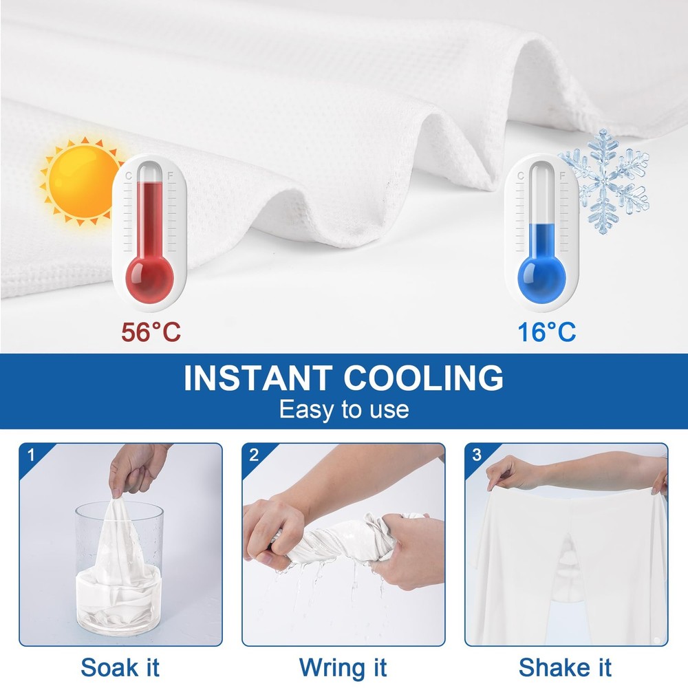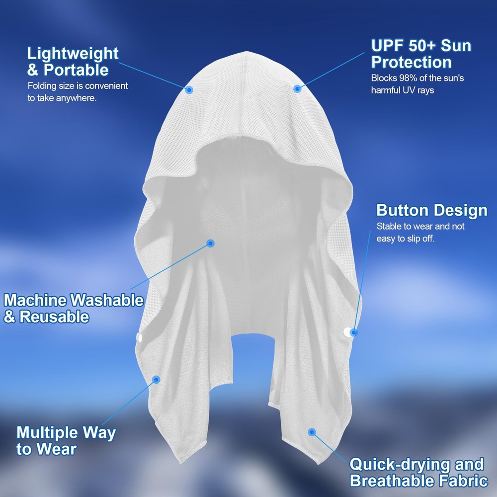 Cooling Hoodie Towel Specifications: Material: Microfiber Size: 25 x 12 in/63 x 30 cm Fabric Features: absorbent, UV protection, sun protection, Quick Dry, Chemical-free. Fabric Type: 45% Polyester/55% Nylon 3 Simple Steps to Use Cooling Towels 1.Wet with water thoroughly 2.Wring out excess water 3.Shake to activate the cooling To re-activate, simply repeat these steps for hours of cooling. For maximum cooling effect, keep the towel covered with water and ensure contact with the skin. Cooling Towel for Neck and Face for Hot Weather 1.Perfect for Sports Fans: running, camping, hiking, fishing, backpacking, cycling, yoga, golf, fitness, swimming, basketball, football, rugby, tennis, volleyball, traveling, climbing, beach, etc. 2.Perfect for Physical treatment: Body temperature is too high, headache relief, heatstroke prevention, sunscreen protection. 3.Perfect for Daily Life: cooling while absorbing sweat for outdoor workers, sports enthusiasts, kitchen staff, mom with baby (works wonders). INSTANT COOLING & REUSABLE TOWEL: The unique cooling system uses moisture from the towel to draw the sweat away from your skin to keep you cool, now Cooling Hoodie Towel protects your skull from harmful UVA and UVB rays and sweat keep away from your eyes. COOLING TOWELS FOR NECK AND FACE: Breathable, quick-drying hoodie towelstays chilled for up to 3 hours (depending on conditions). No chemicals are used for these Cooling Hoodie Towels. It's perfect for hot flashes, outdoor activities, indoor exercise, fever or headache therapy, heatstroke prevention, sunscreen protection, cooling while absorbing. SIMPLE AND COMFORT: cooling neck towel is thoughtfully designed with buttons at the neck. Simply button up to achieve the desired effect, beautiful and practical. It is excellent for outdoor sportsmen. No worries about slipping off when you move. ONE SIZE FIT FOR ALL: Cooling Hoodie Towel Fits under your helmets or individual wear. It’s so breathable and cool, you can wear it as a head scarf men, a biker head neck scarfs, a chef scarf or head bandana. Perfect for Fishing, Cycling, Running, Jogging, Sports, Working Outside, Mowing the Grass, Gardening, Yard Work, Concerts, Festivals, BBQ, Tailgating, Vacation. CUSTOMER SERVICE: specialize in creating products to stay cool in the heat. Please do mail us if you face any problems or not happy with the item, our team is always there for you to resolve any issues. Make sure to order from , your cool summer will be starting from here.