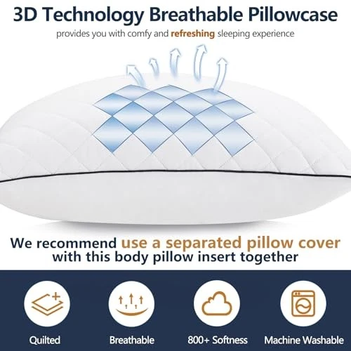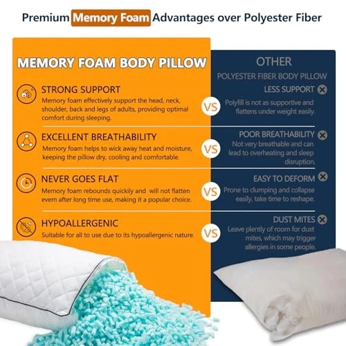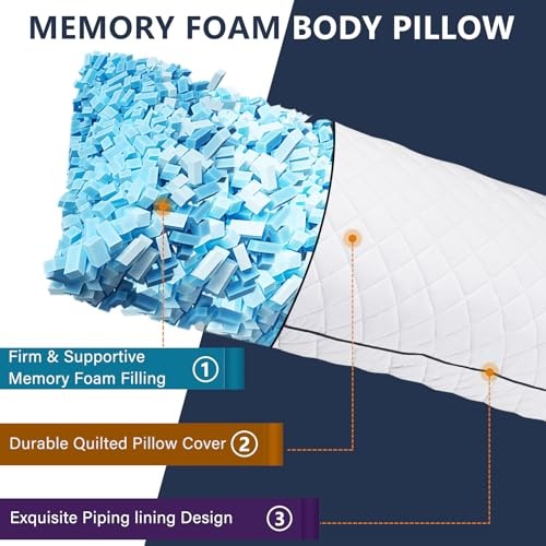 Cooling Memory Foam Body Pillow for Adults – Long White Support for Comfortable Sleep