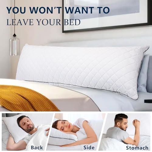 Return Policy Fast Delivery Trusted seller Body Pillow, Cooling Memory Foam Body Pillows for Adults Sleeping, Long Pillow for Bed, Big Large Firm Full Body Pillow for Side Sleeper, 20x54 Inch, White Product Description Memory Foam Body Pillow Insert (No Outer Cover): Stuffed with high-end shredded memory foam, our body pillow insert provides outstanding sleep comfort. It conforms perfectly to natural body curve and maintains spinal alignment. Memory foam evenly disperses body weight, eliminates pressure on joints and muscles, providing unparalleled sense of relaxation and ensuring you wake up every morning with renewed sense of spirit. Use it separately or with preferred pillowcase together Just-right Support: Shredded memory foam body pillows for sleeping reduces strain on your head, neck, spine, back, hips and knees, ensures optimal support at all angels. The firm body pillow features a zippered cover for you to add or remove foam filling to adjust loft, providing you hotel-quality softness and offers adequate firmness Breathable Cooling Long Pillow Insert: Uniquely selected air-permeable, skin-friendly body pillow cover and shredded memory foam filling allow for better ventilation and airflow throughout the cool long body pillow and effectively prevent moisture, keeping you cool and comfortable while sleeping EleganElegant & Durable: Long pillow for bed features a luxury quilted cover with exquisite piping around the outer edge, more durable and beautiful, making it a perfect decorative pillow for bed and adding extra elegance to your bedroomt & Durable: Long pillow for bed features a luxury quilted cover with exquisite piping around the outer edge, more durable and beautiful, making it a perfect decorative pillow for bed and adding extra elegance to your bedroom Long Body Pillow for Adults: Measuring 20x54 inches, this full body pillow is big and thick enough and suits back, stomach and side sleepers to hug and cuddle. Use it while reading, sleeping or pregnancy on bed, sofa, daybed for extra support to achieve exceptional coziness Shipping Returns Payment Shipping Shipping is FREE to all addresses other than APO/PO boxes in the lower 48 states. All our stock ships from US-based warehouses. Shipped via USPS or UPS (depending on location and package weight) Unless stated otherwise, all orders will ship within 24-72 hours of your payment being processed. Check our feedback to see the great reviews of FAST shipping we offer. Returns Seller does not accept returns Payment We currently accept payment via eBay managed payments only. Once payment is cleared, we will dispatch your shipment within 1-3 business days. Please refer to the "Shipping" tab for more information regarding shipping speed to your destination.