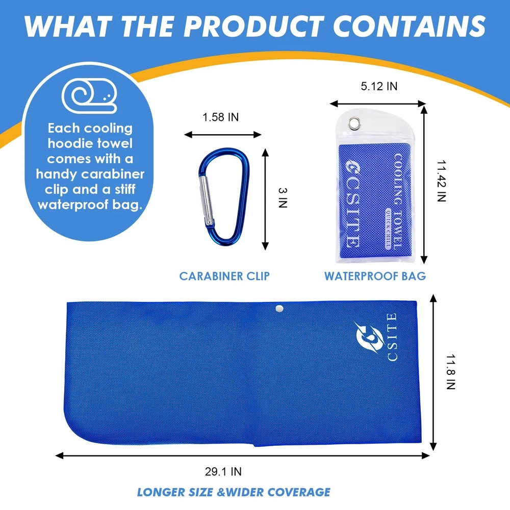 Cooling Hoodie Towels, Instant Cooling Towels for Neck and Face, UPF 50 Sun Protection, Ice Towel for Hot Weather, Head Towel for Sports, Camping, Cycling & More Activities INSTANT COOLING: Cooling hoodie towels require only three steps to soak, wring, and shake to activate the towel's cooling effect and keep it cool for up to several hours (depending on conditions). Reactivate the cooling effect by repeating these steps. A unique cooling system uses the moisture in the cold towel to wrest sweat away from the skin MATERIALS & CHARACTERISTICS: This cooling hoodie towel is made of high-quality microfibers with a mesh pattern, is chemical-free, durable, UPF 50 sun protection, soft breathable ice and skin-friendly. It is super absorbent and dries quickly. The button design can make it fit more closely to the head and neck, so that you are not burdened in summer MULTIFUNCTIONAL TOWEL: Cooling hoodie towel for hot weather is perfect for exercise enthusiasts who love yoga, sports, gym, golf, running, camping and fitness.It is also ideal for outdoor workers to prevent sun damage and absorb heat to keep cool. Not only that, it's suitable for fever or headache therapy, heatstroke prevention, sunscreen protection, cooling while absorbing EASY TO CARRY & CLEAN: Each hoodie towel comes with a waterproof pouch and carabiner clip.Using waterproof pouch,you can easily carry a cold towel during rock climbing,golf trips. Carabiner clip make it easy to attach cooling towels for neck and face to the belts of sports bags and travel backpacks. Towels can be hand-washed or machine-washed and reused DESIGN FEATURE & CUSTOMER SERVICE: Cooling hoodie towels measure 29"x12" with an extended length designed to adequately cover the head, neck and face. If you have any problems with your cooling hoodie towels, please email us and we will answer your questions quickly and patiently Shipping We offer FREE shipping on all orders! We ship within Three business days of payment, usually sooner. We use a selection of shipping services such as UPS, FedEx, USPS etc. We only ship to the lower 48 states, no APO/FPO addresses or PO Boxes allowed. Local pickups and combined shipping options are not provided at this time. Return You can return a product for up to 30 days from the date you purchased it. Any product you return must be in the same condition you received it and in the original packaging. Please keep the receipt. Payment We accept payment by any of the following methods: PayPal Please pay as soon as possible after winning an auction, as that will allow us to post your item to you sooner! Feedback Customer satisfaction is very important to us. If you have any problem with your order, please contact us and we will do our best to make you satisfied. Contact Us If you have any queries, please contact us via ebay. We usually respond within 24 hours on weekdays. Please visit our eBay store to check out other items for sale! Thank you for shopping at our store.